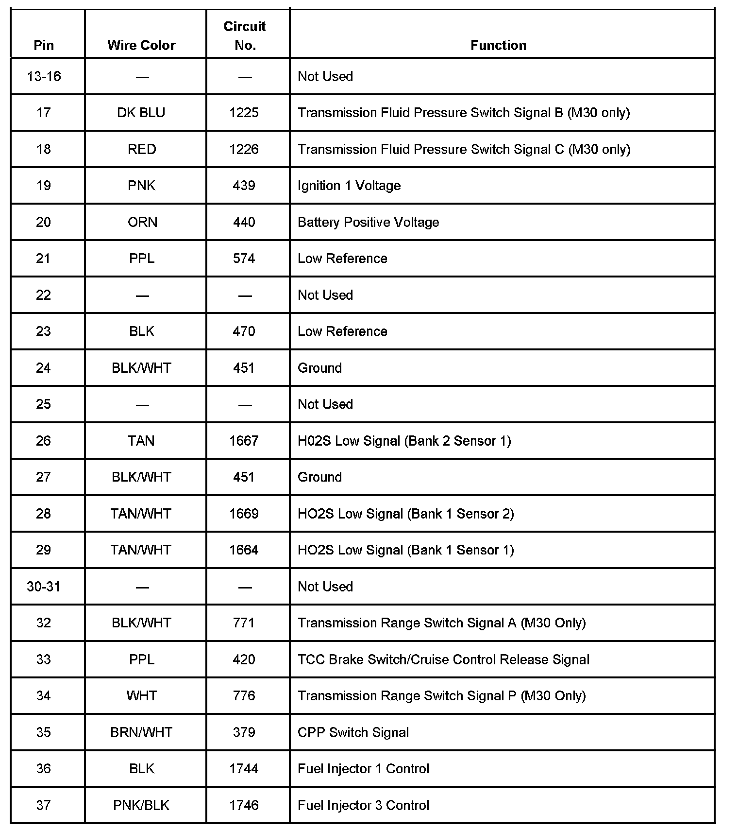 Powertrain Control Module (PCM) Connector C1 Part 2: