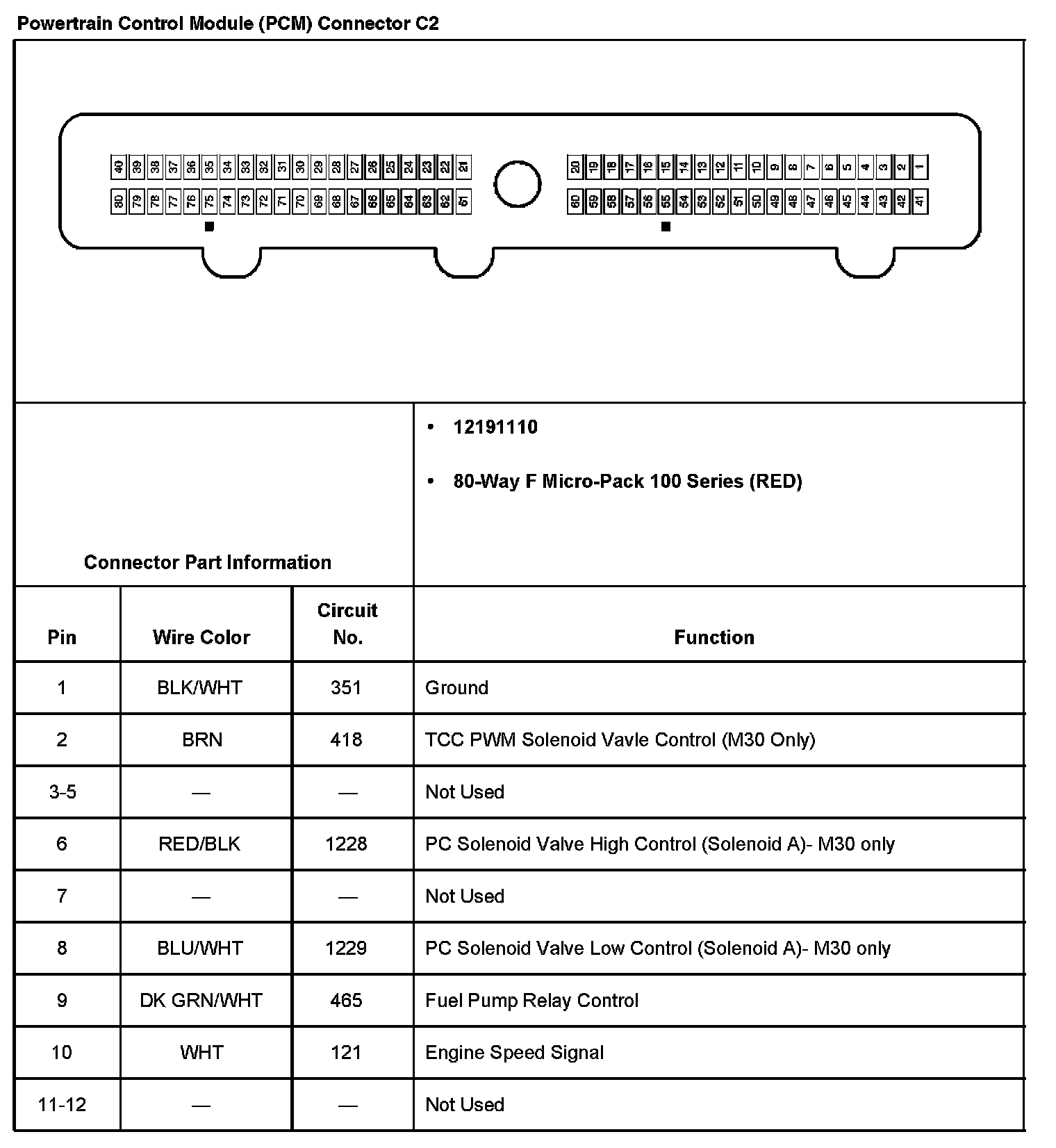Powertrain Control Module (PCM) Connector C2 Part 2: