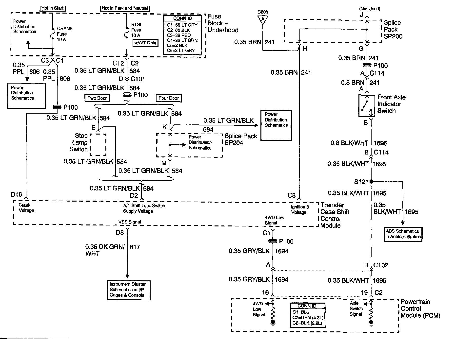 Control Schematics (Front Axle Indicator Switch and Powertrain Control Module (PCM))