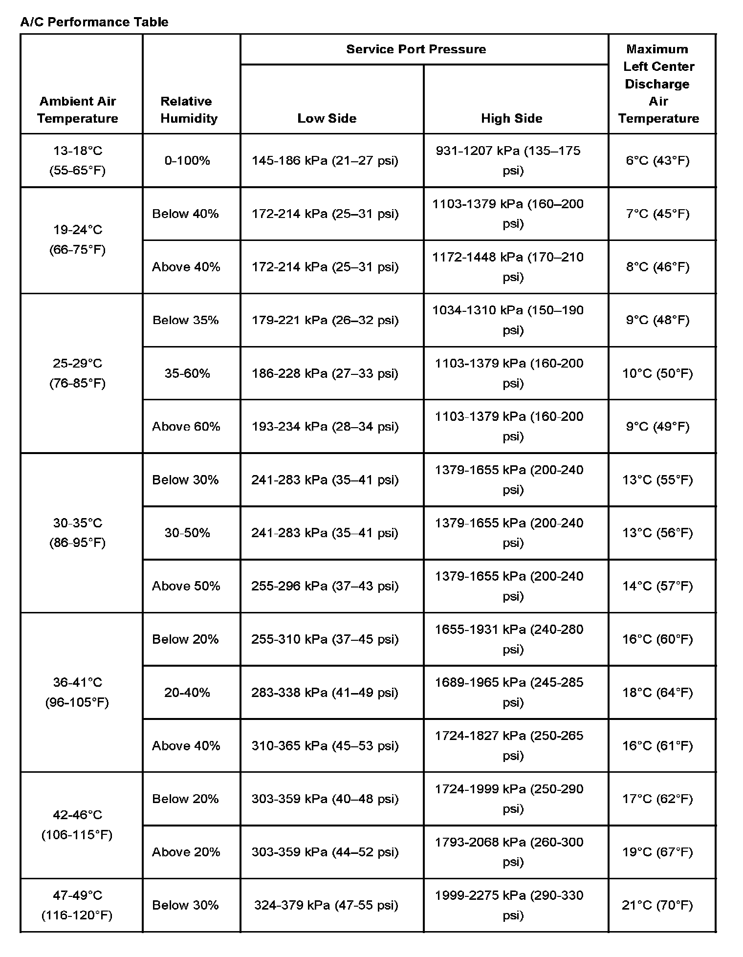 A/C System Pressure - Zone Classification