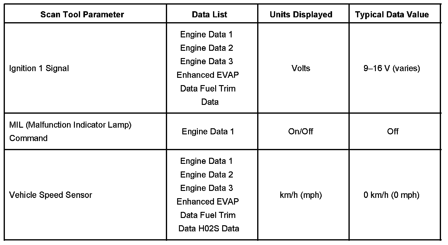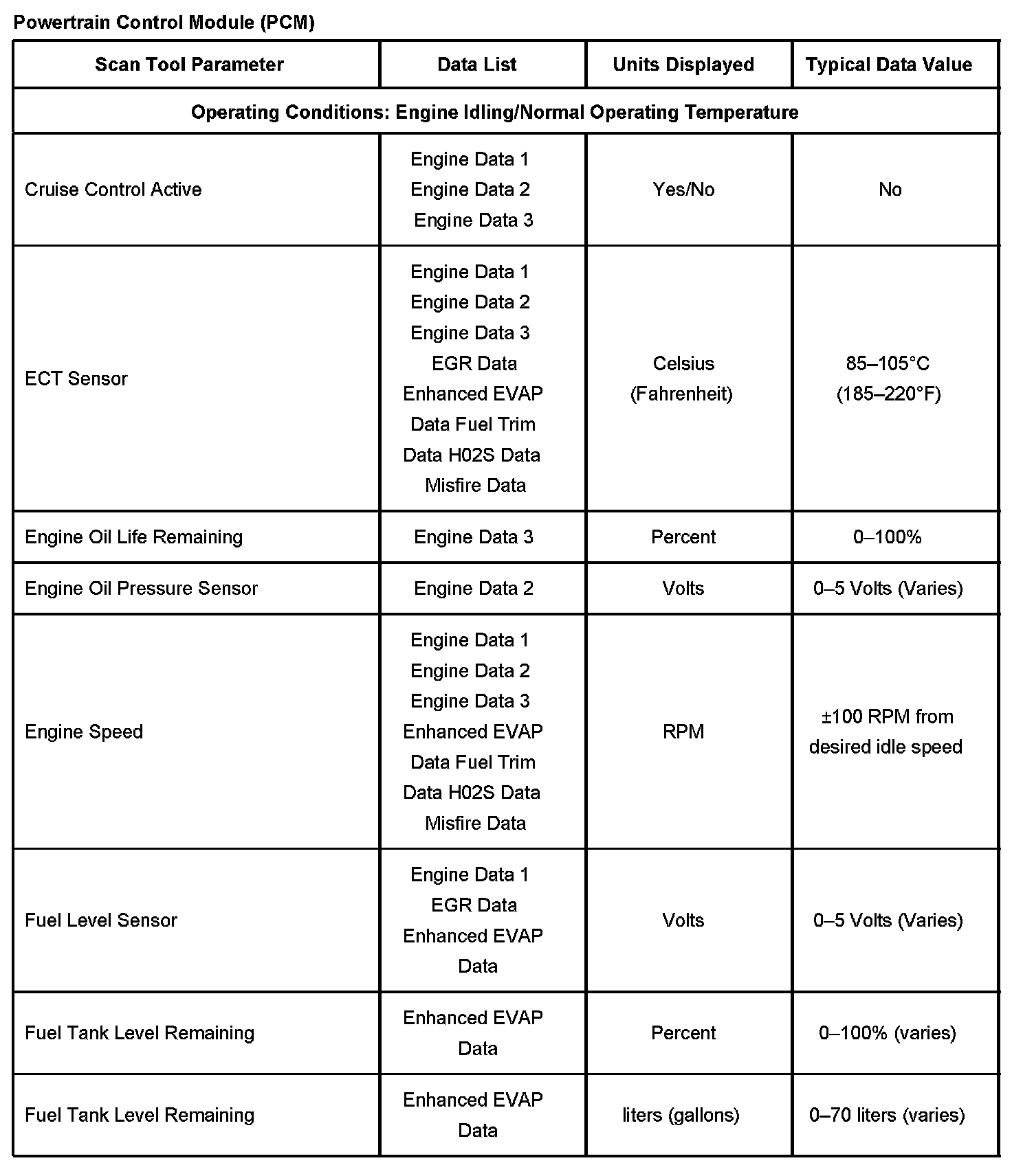 Scan Tool Data List - Powertrain Control Module (PCM)