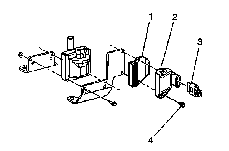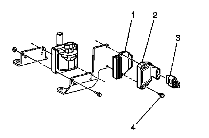 2. Remove 2 screws (4) holding the ignition control module (2) and the heat sink (1) to the bracket.