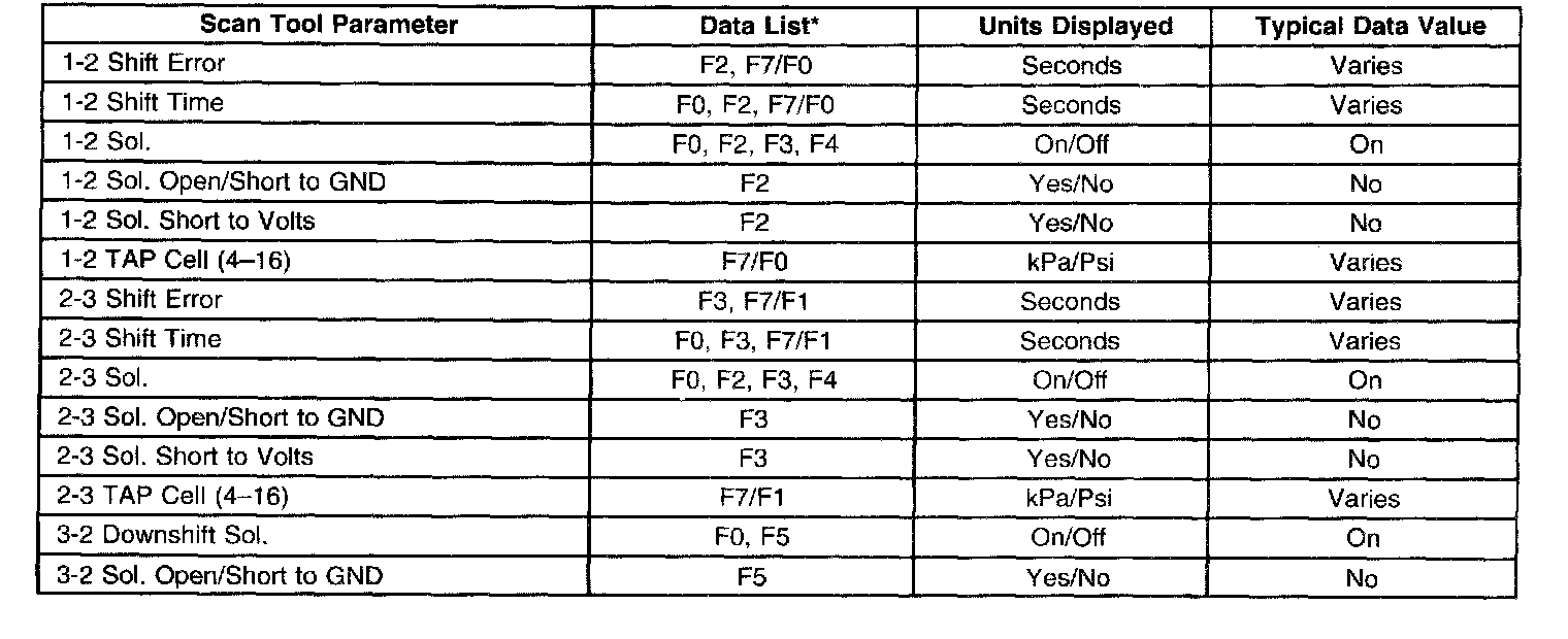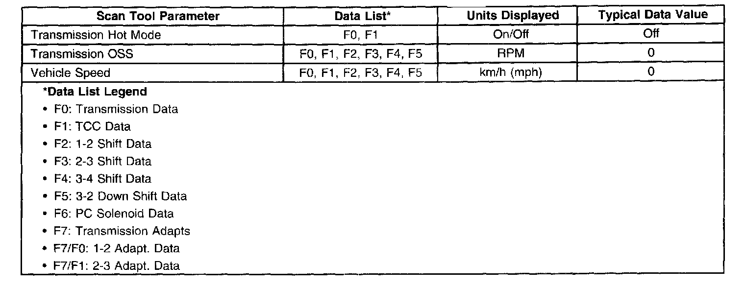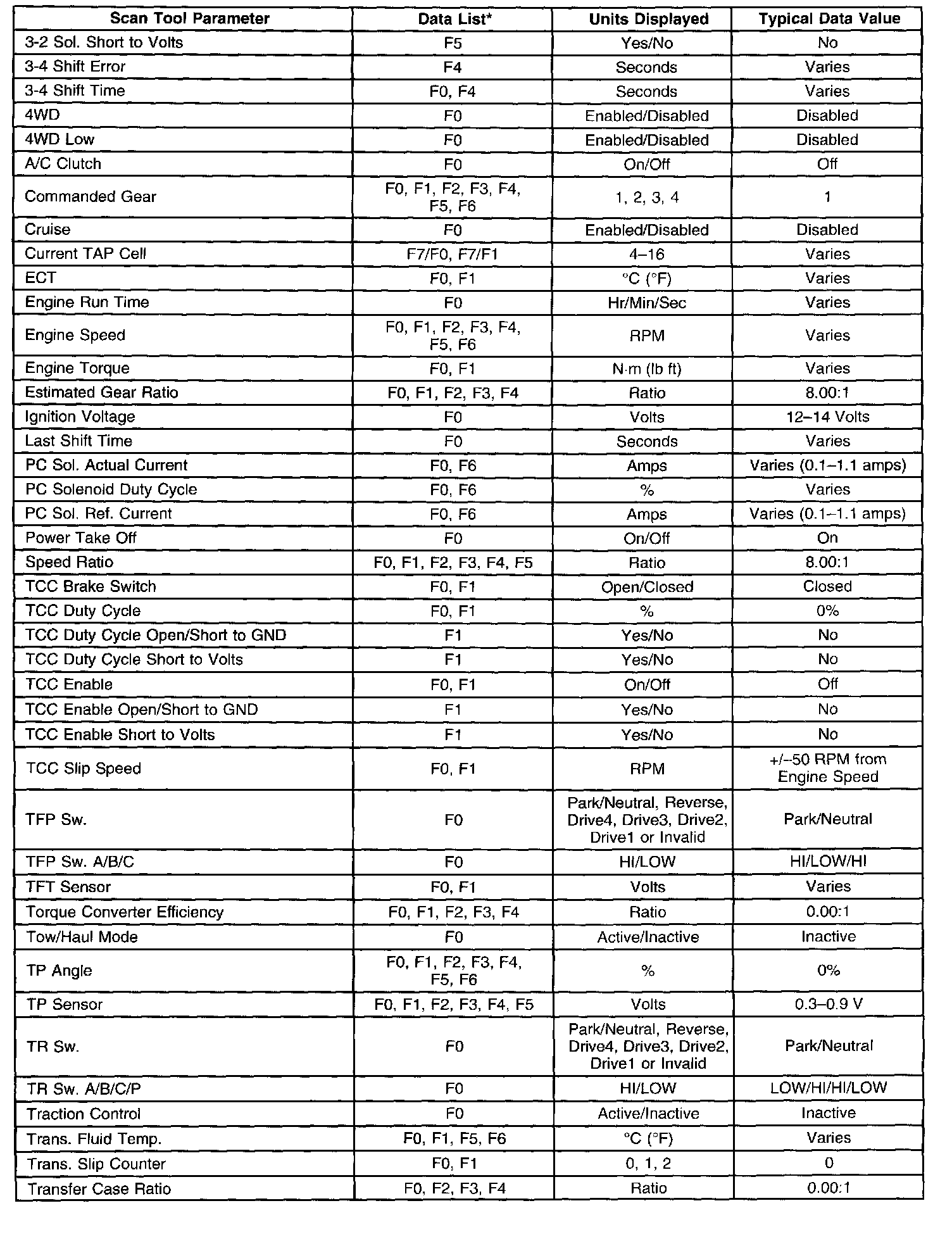 Transmission Scan Tool Data ListUse the scan tool data list under the following conditions: