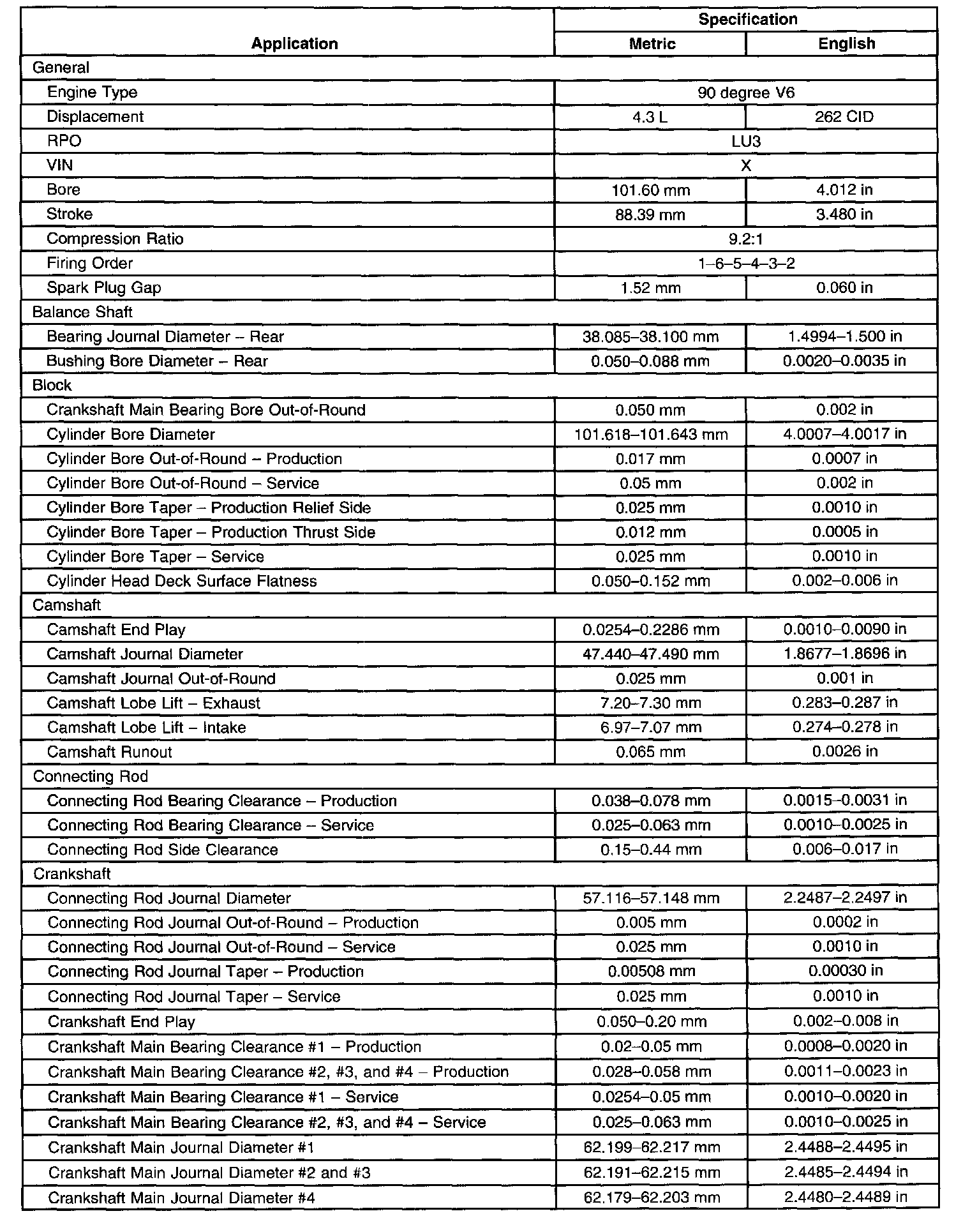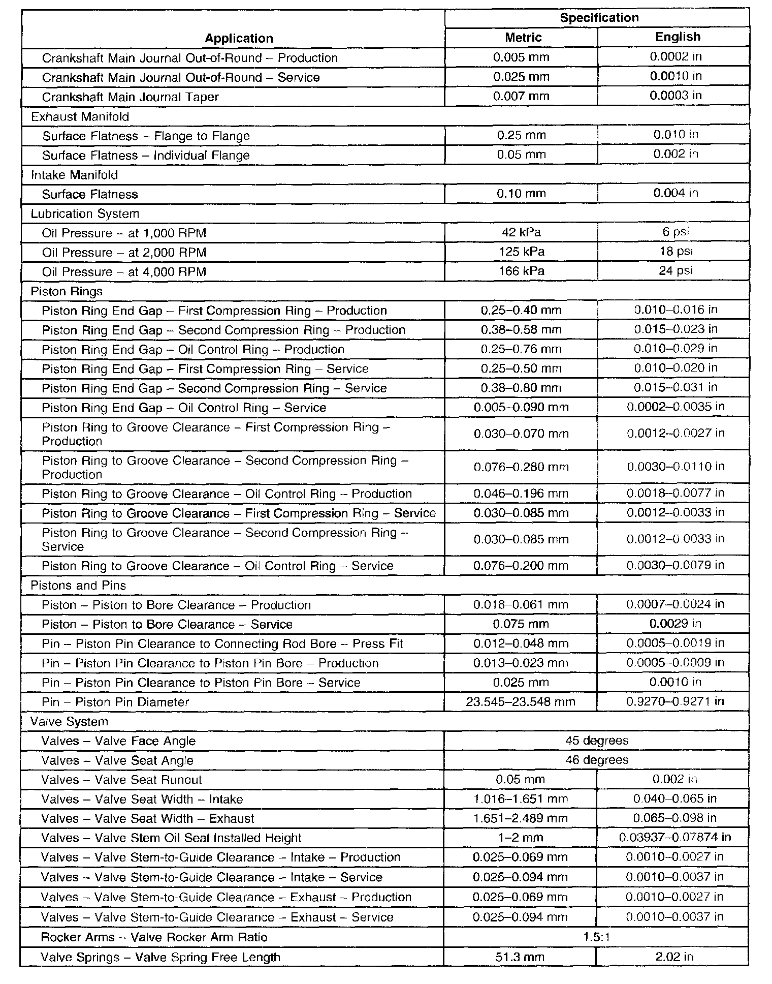 Engine Mechanical Specifications