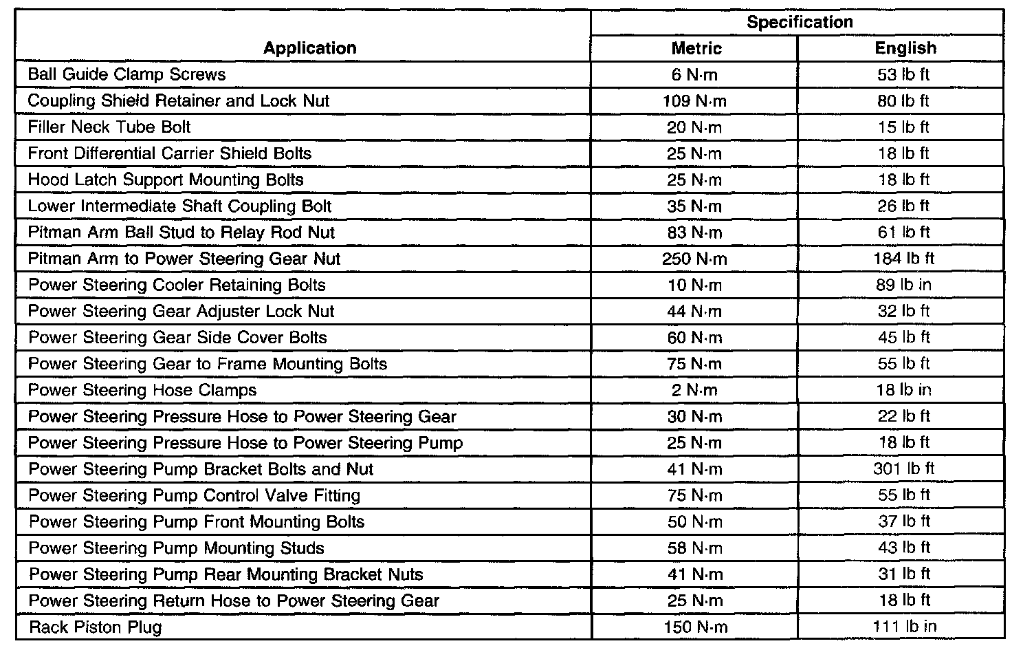 Fastener Tightening Specifications: