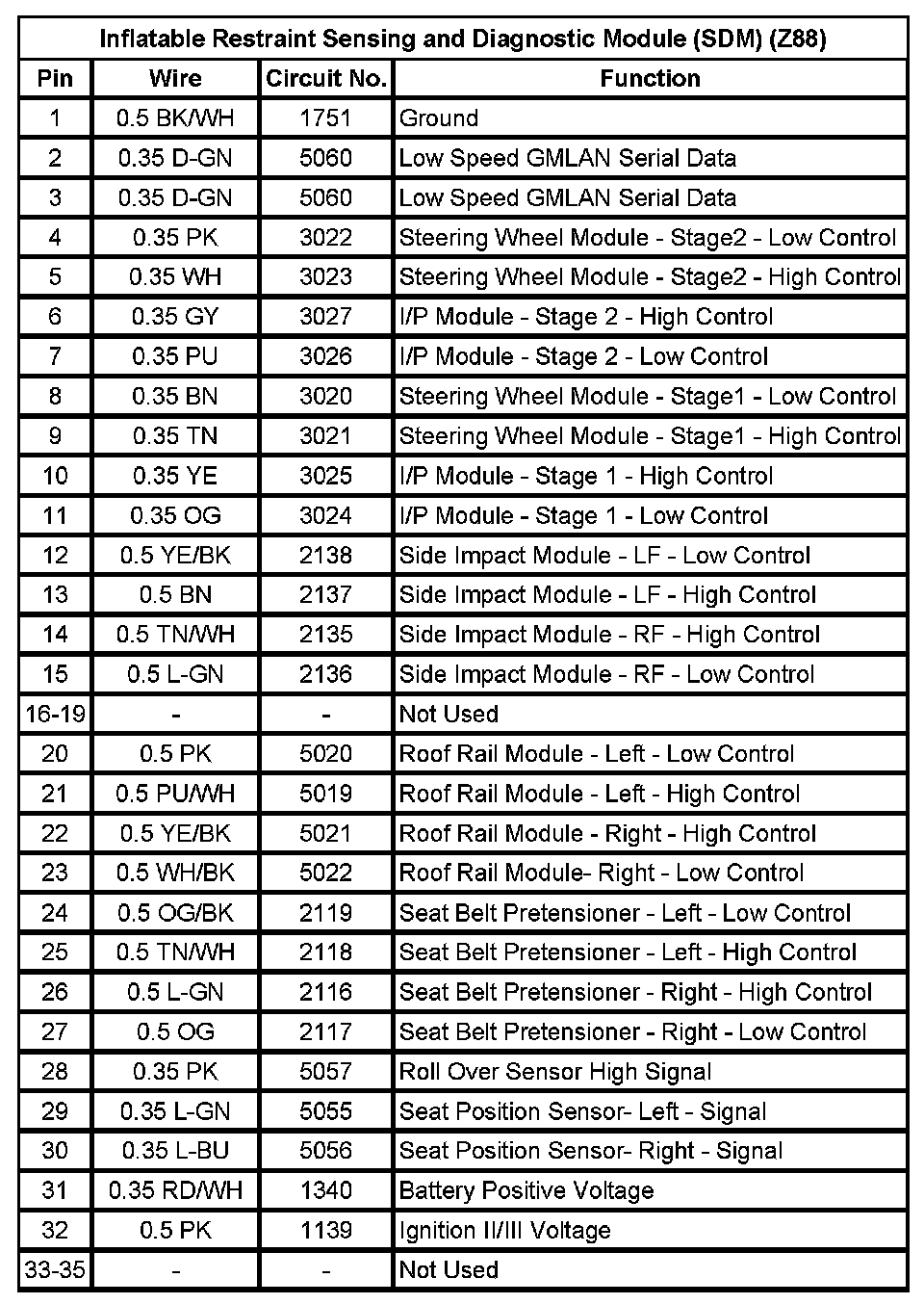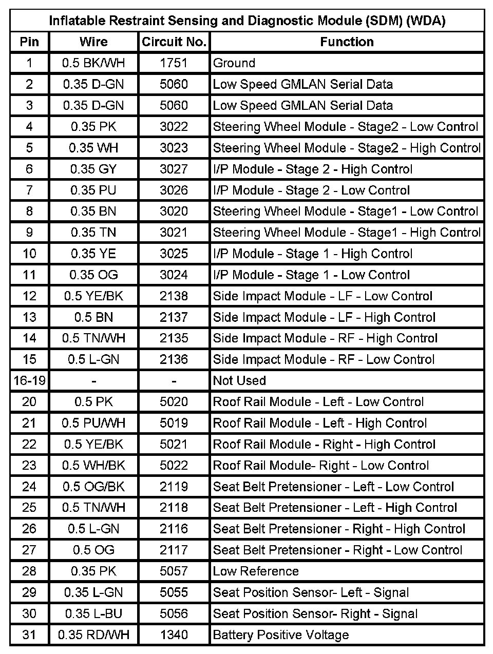 Inflatable Restraint Sensing And Diagnostic Module (SDM) (WDA) (Pin 1 To 31):