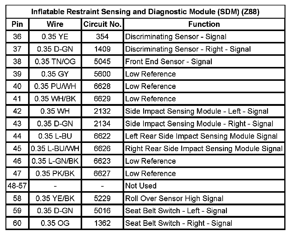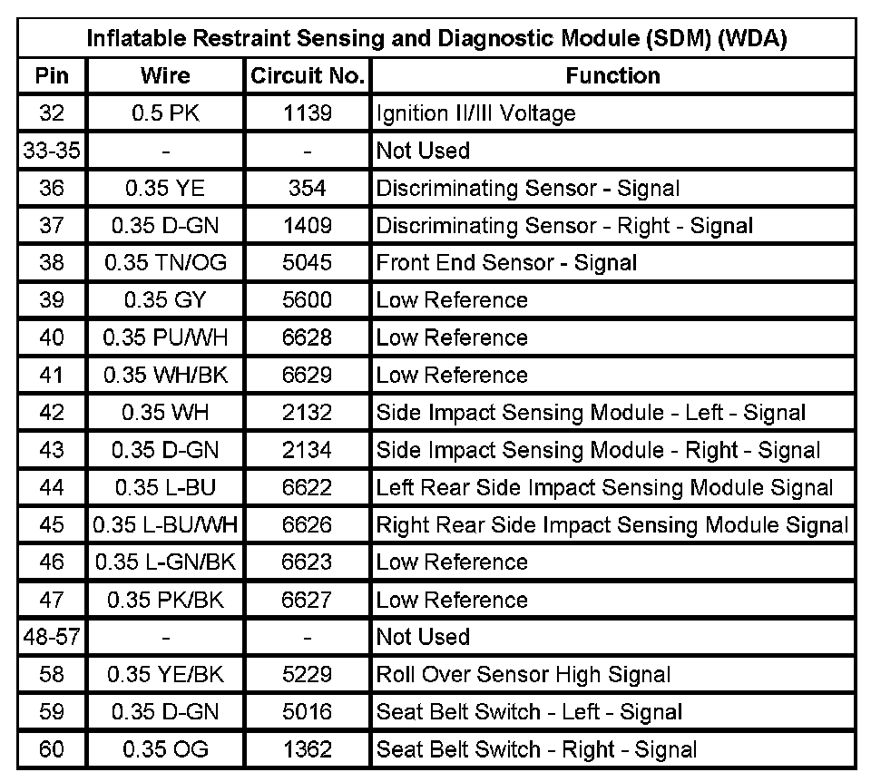 Inflatable Restraint Sensing And Diagnostic Module (SDM) (WDA) (Pin 32 To 60):
