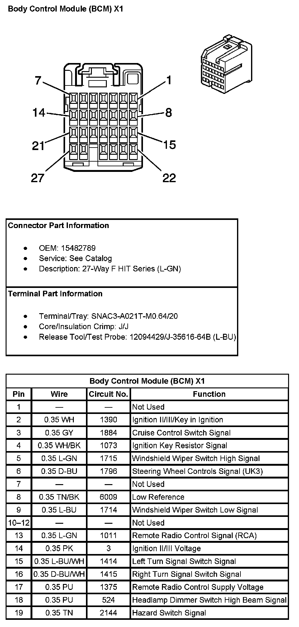 Body Control Module (BCM) X1 Pin 1 To 19: