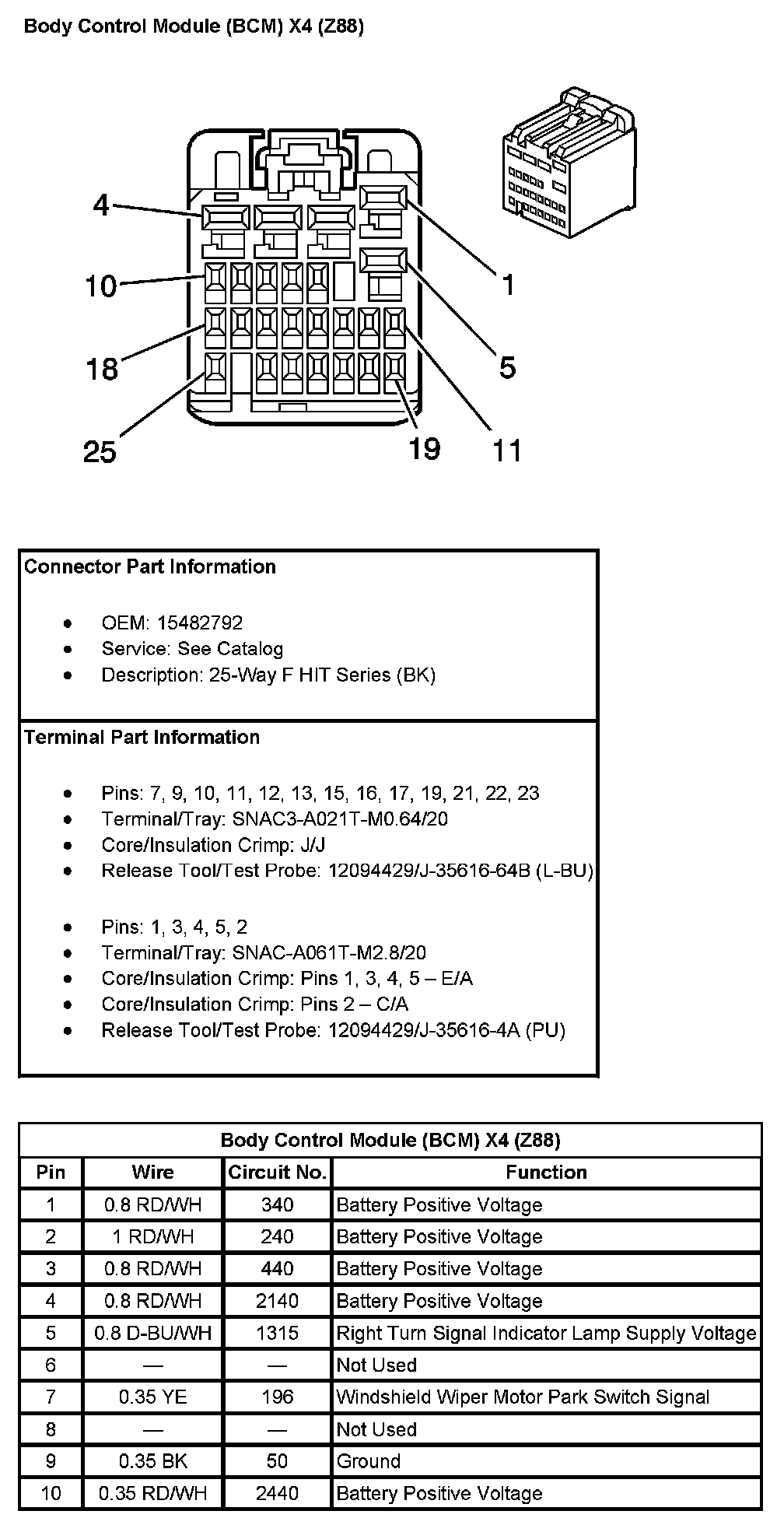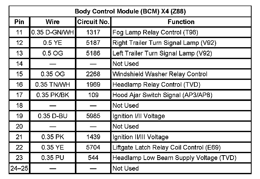 Body Control Module (BCM) X4 (With RPO Code Z88) Pin 11 To 25: