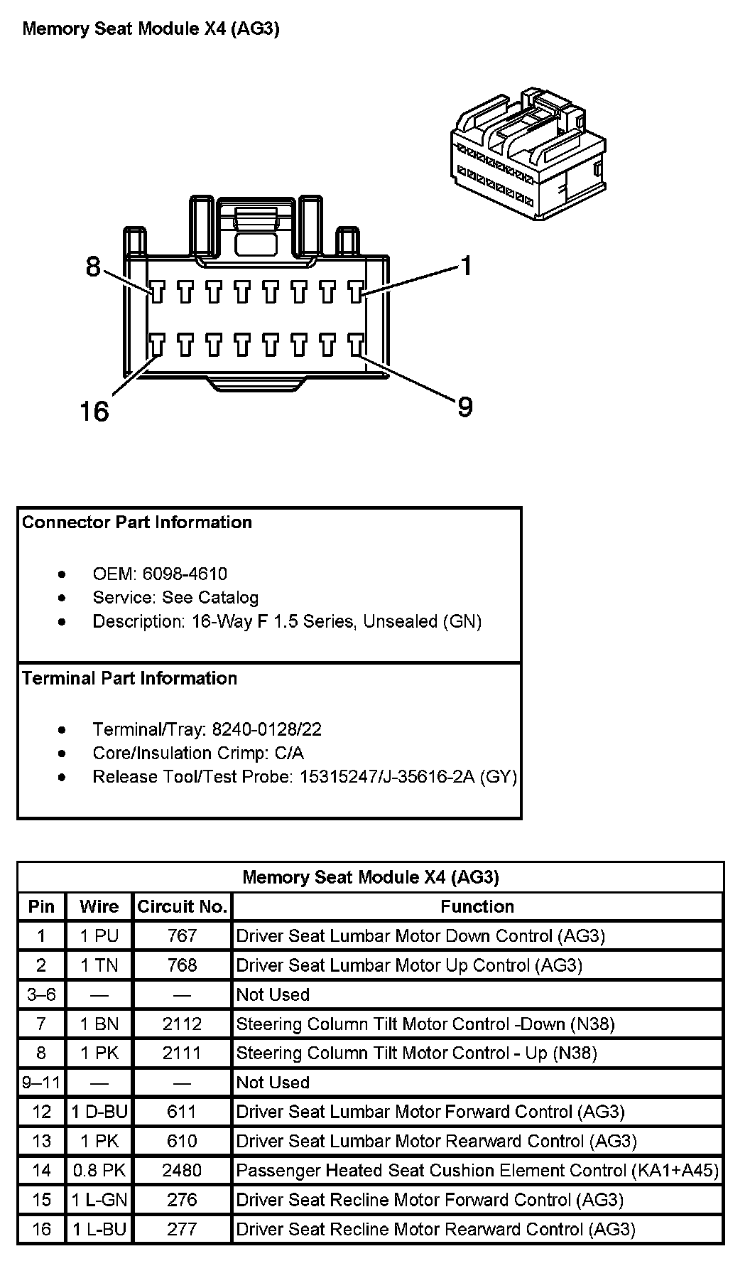 Memory Seat Module X4 (With RPO Code AG3):