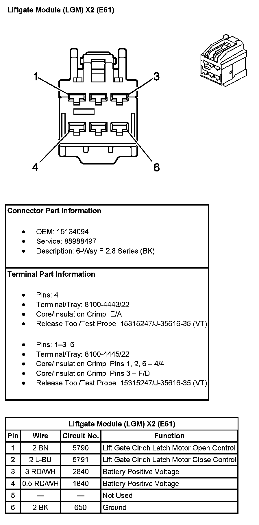 Liftgate Module (LGM) X2 (With RPO Code E61) Pin 1 To 6: