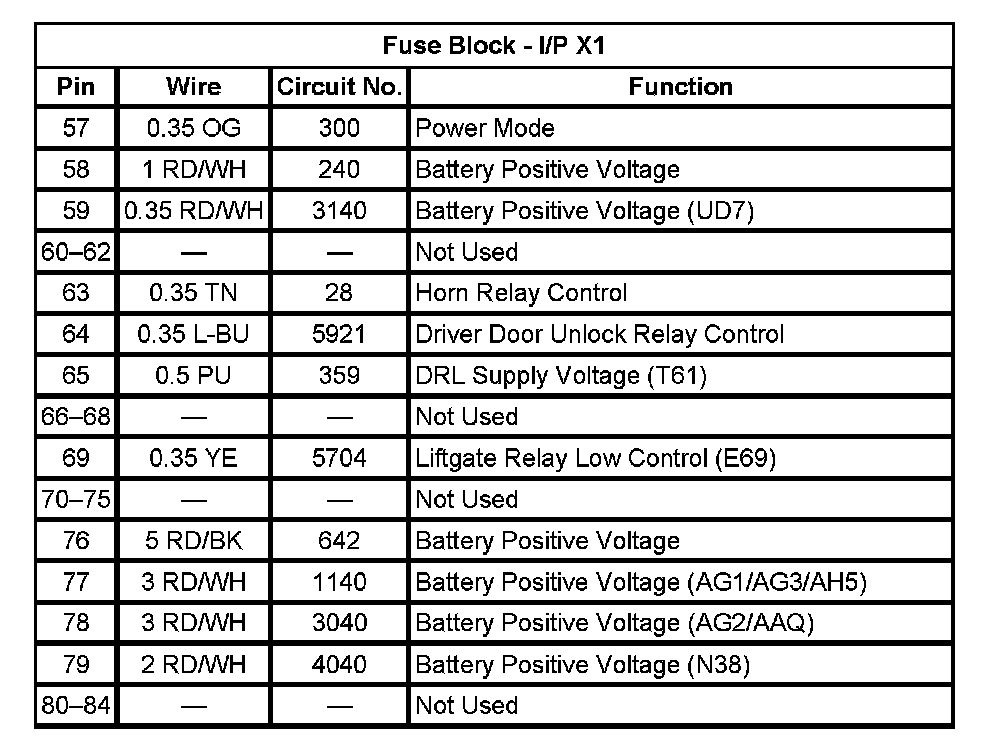 Fuse Block - I/P X1 (Pin 57 To 84):