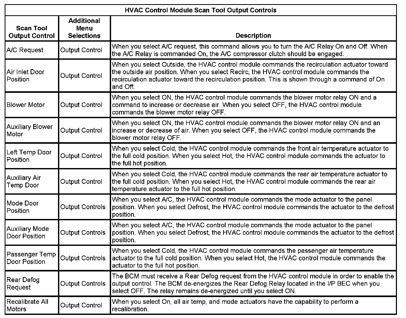 Scan Tool Output Controls
