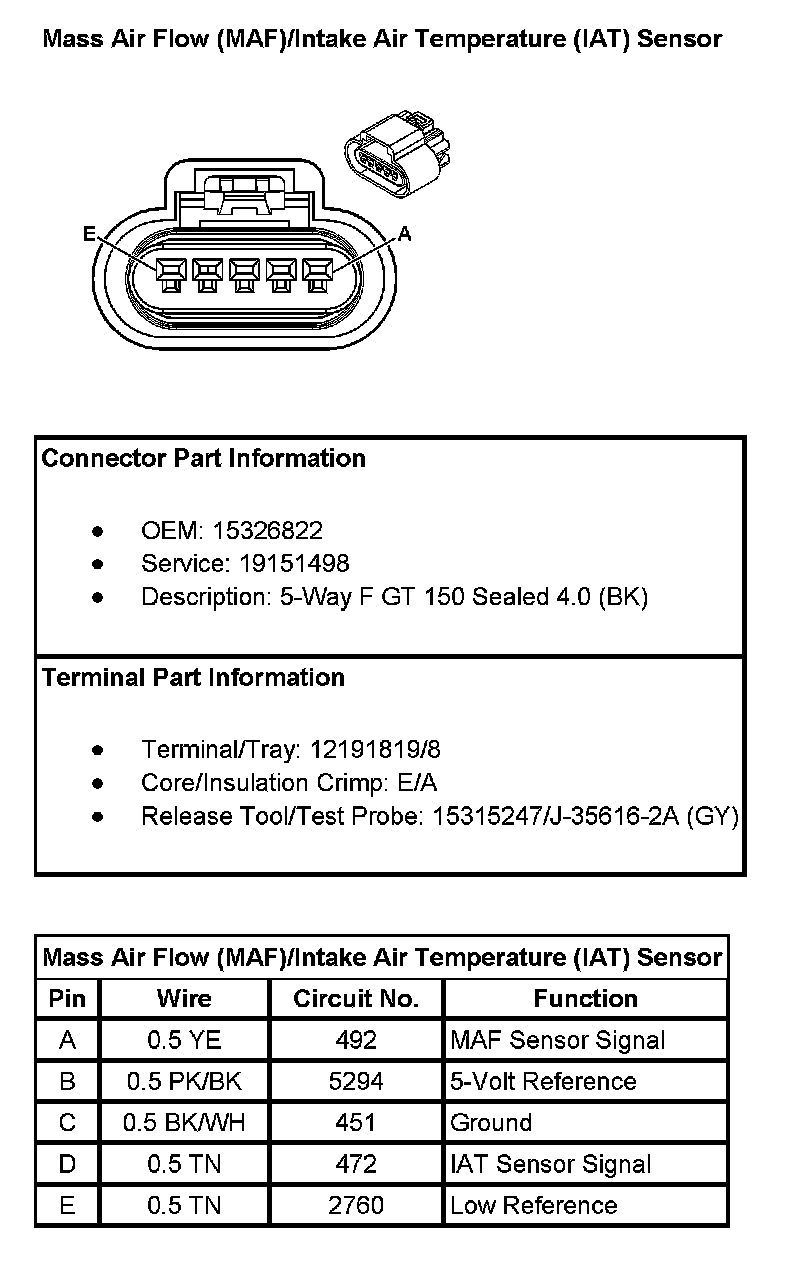 Mass Air Flow (MAF)/Intake Air Temperature (IAT) Sensor: