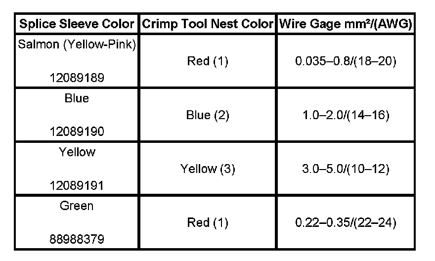 4. Select the proper DuraSeal splice sleeve according to the wire size. Refer to the above table at the beginning of the repair procedure for the color coding of the DuraSeal splice sleeves and the crimp tool nests.