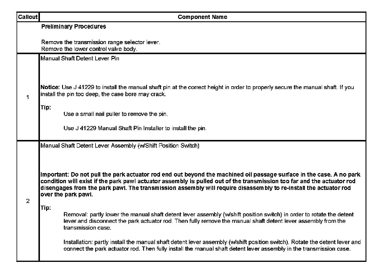 Manual Shift Detent Lever and Shaft Position Switch Assembly Replacement
