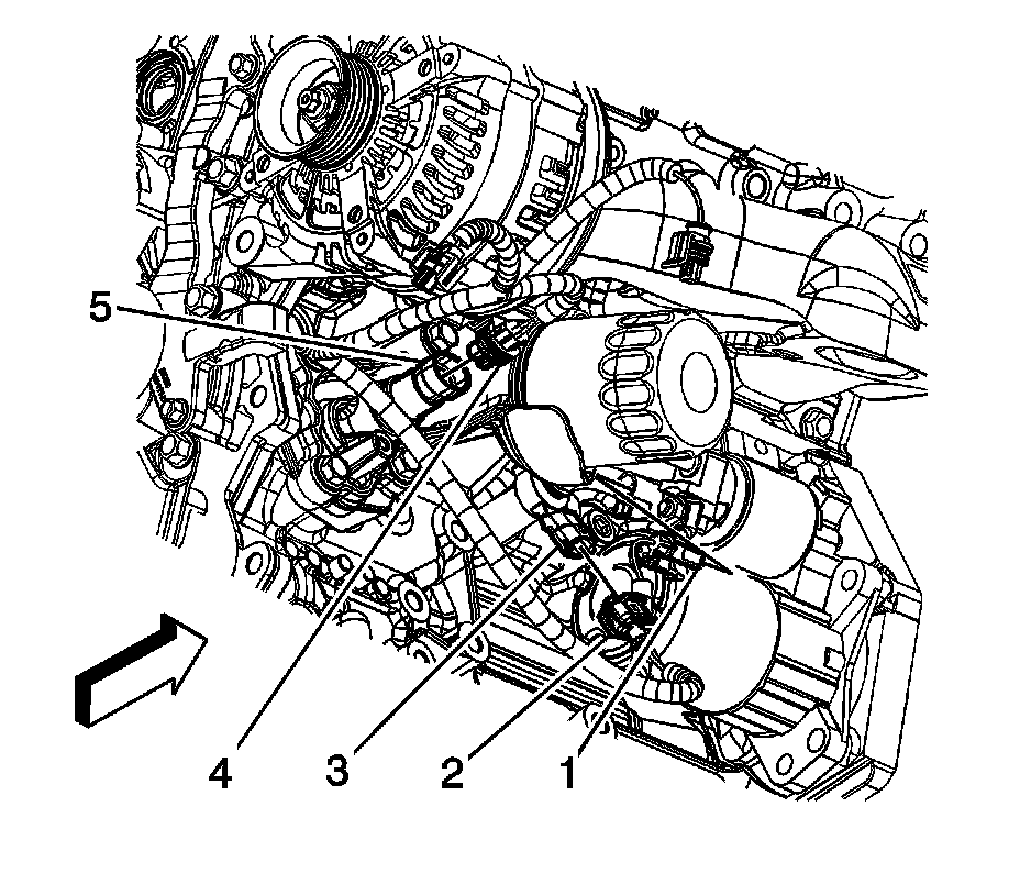 2. Disconnect the engine wiring harness electrical connector (2) from the bank 2 knock sensor (3).