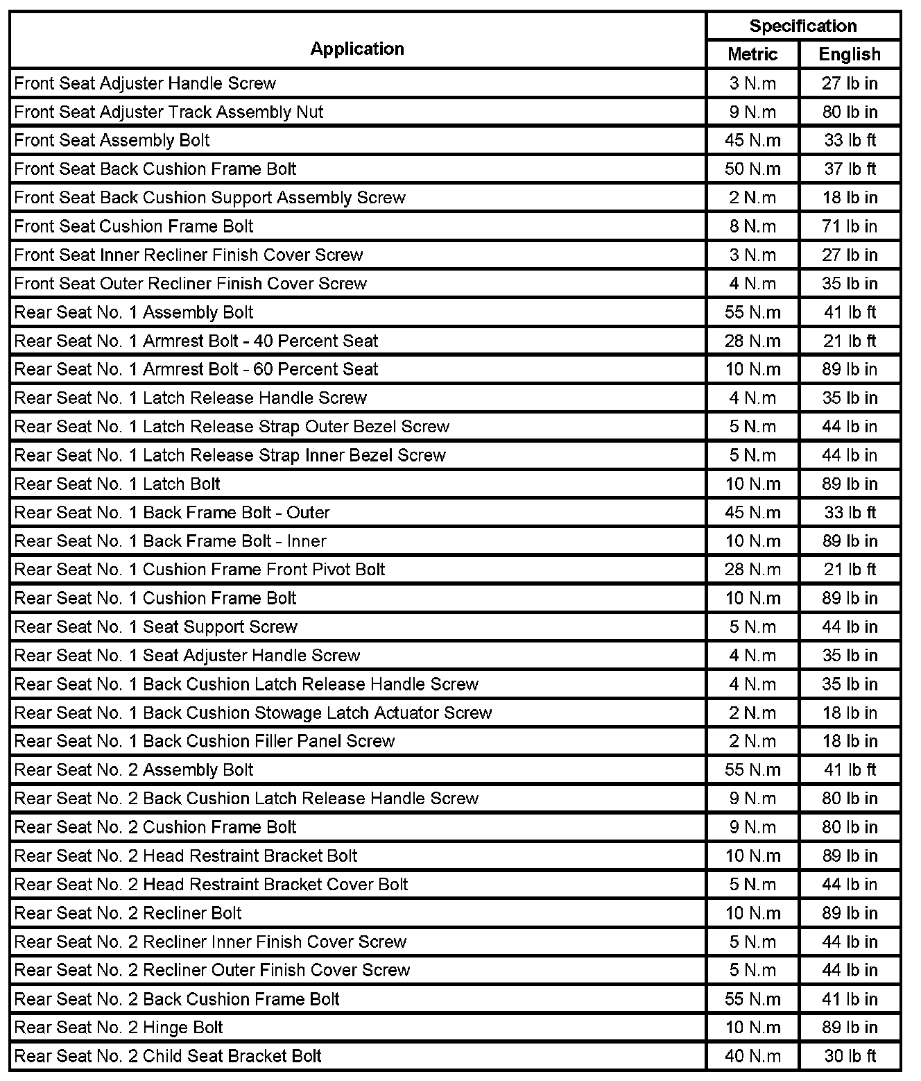 Fastener Tightening Specifications