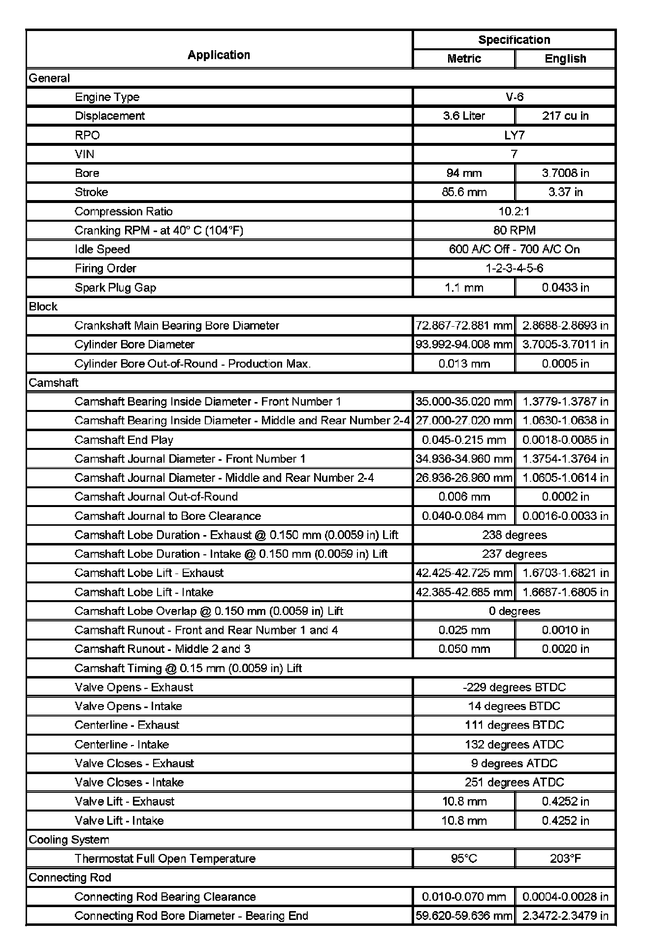 Home >> GMC >> 2007 >> Acadia AWD V6-3.6L >> Repair and Diagnosis >> Specifications >> Mechanical Specifications >> Engine >> System Specifications >> Engine General Specifications & Service Limits