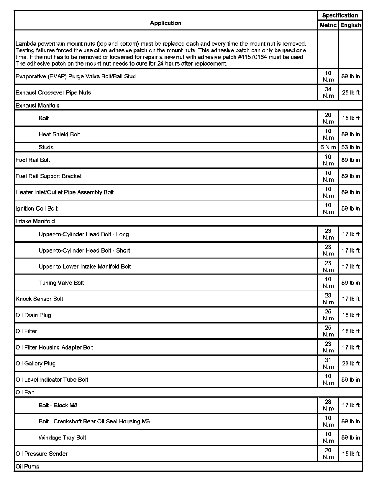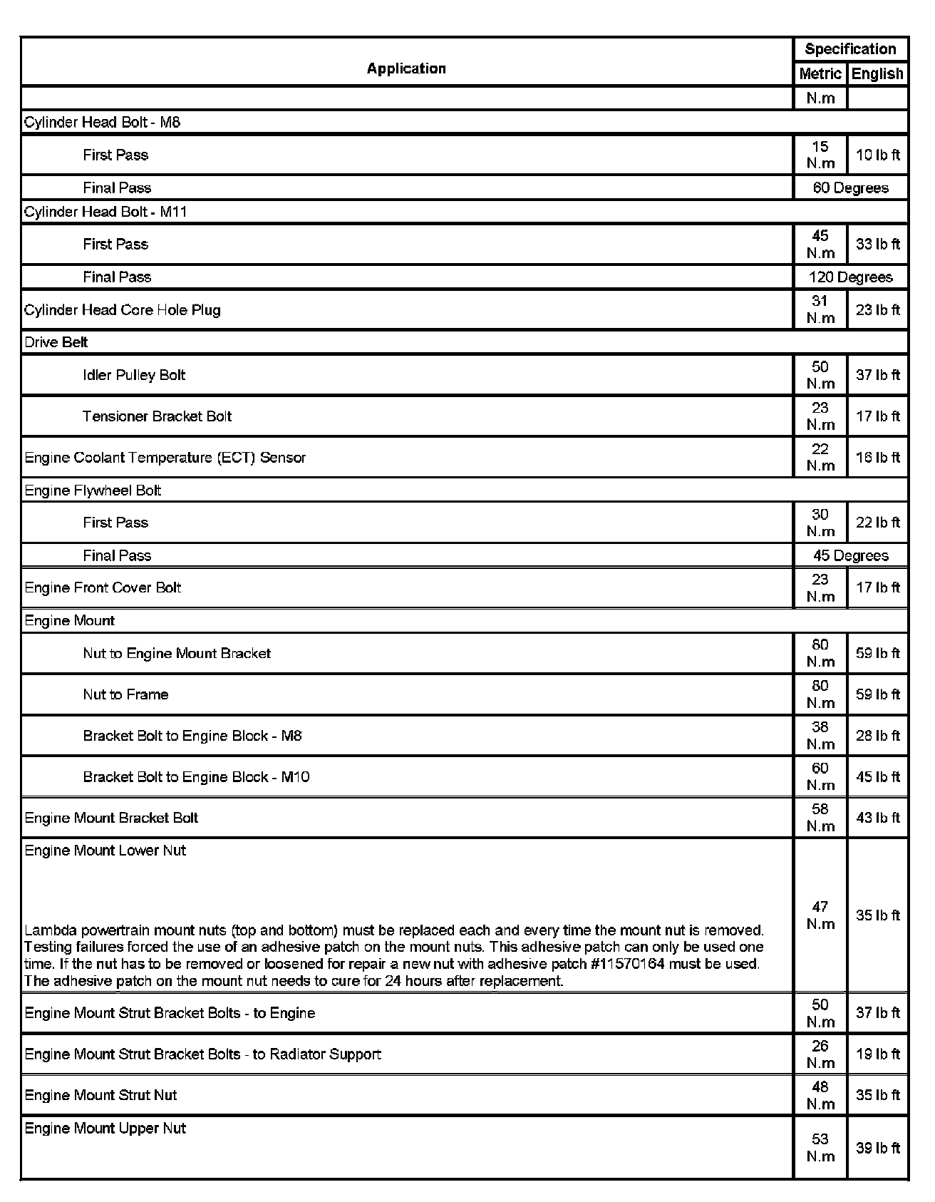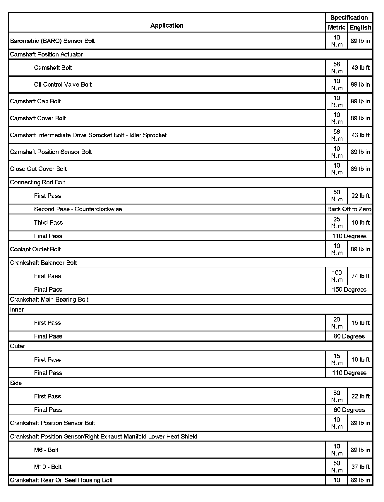 Fastener Tightening Specifications (Part 1):