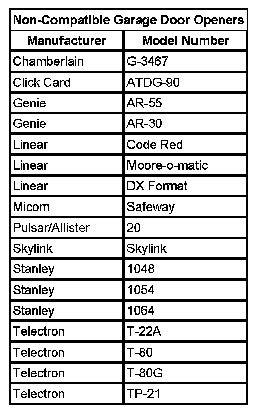 Important: Do not use the garage door opener (GDO) with any garage door opener that does not have the stop and reverse safety feature. This includes any garage door opener model manufactured before April 1, 1982.