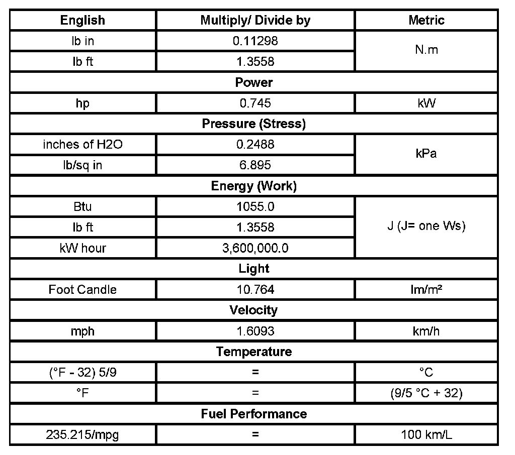 US English/Metric Conversion