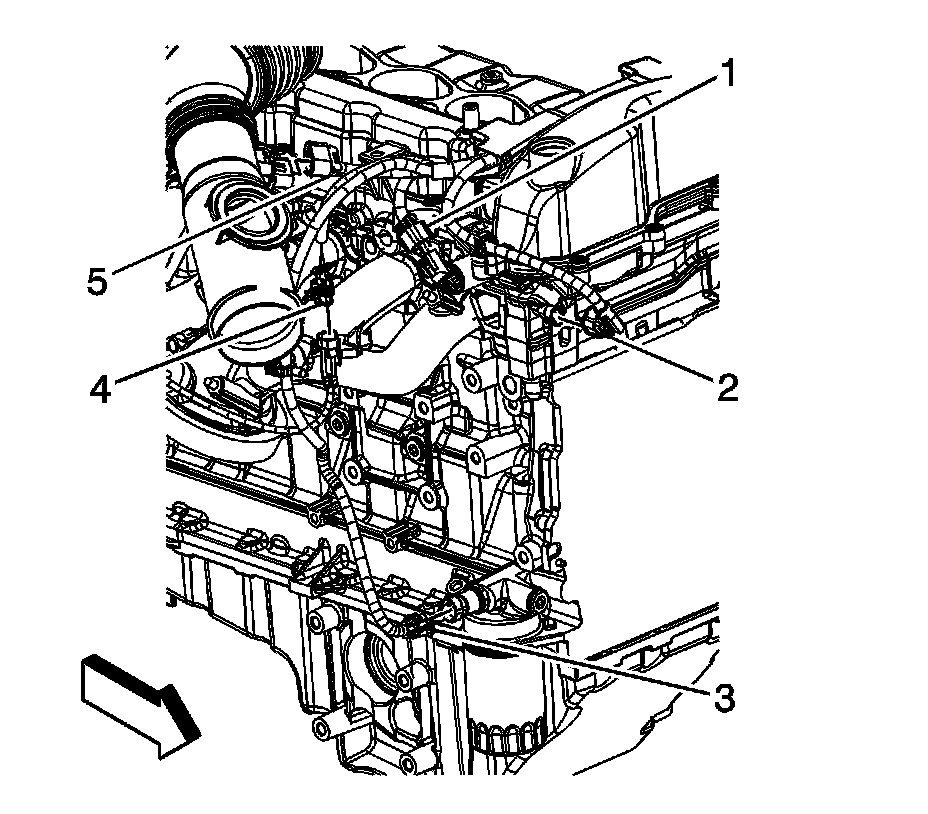 1. Disconnect the engine harness electrical connector (5) from the MAF/IAT sensor.