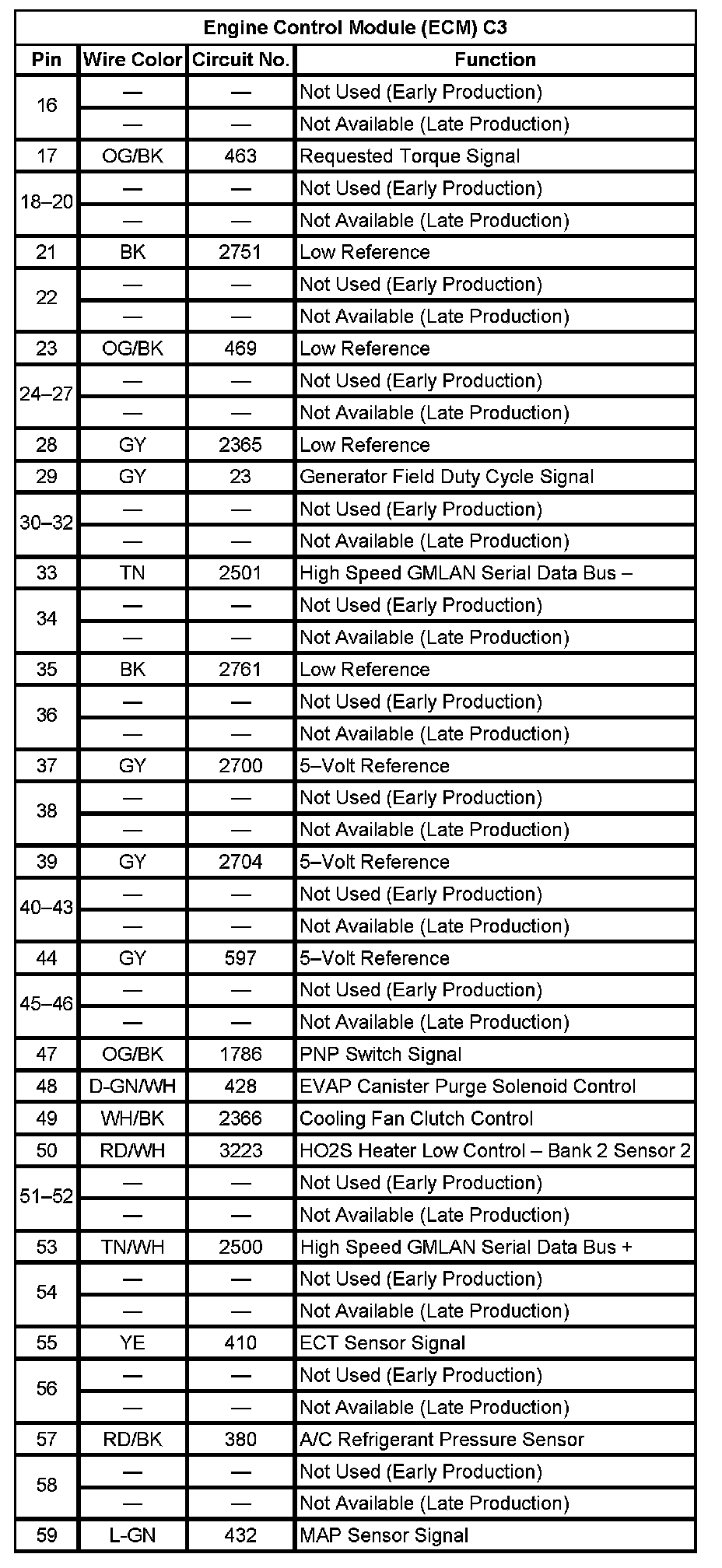 Engine Control Module (ECM) C3 (Pin 16 To 59):