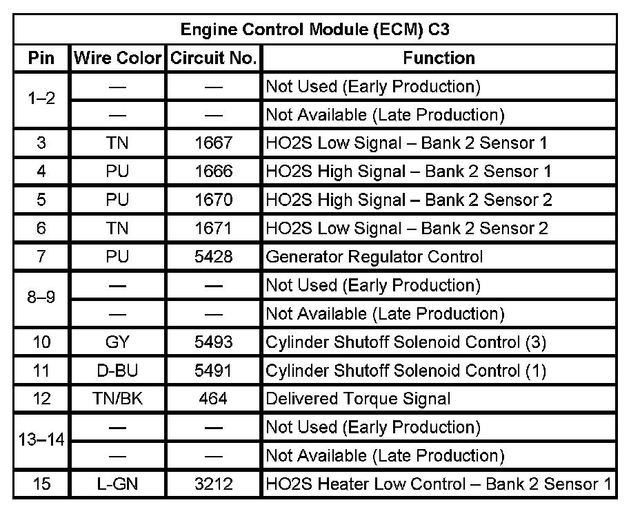 Engine Control Module (ECM) C3 (Pin 1 To 15):