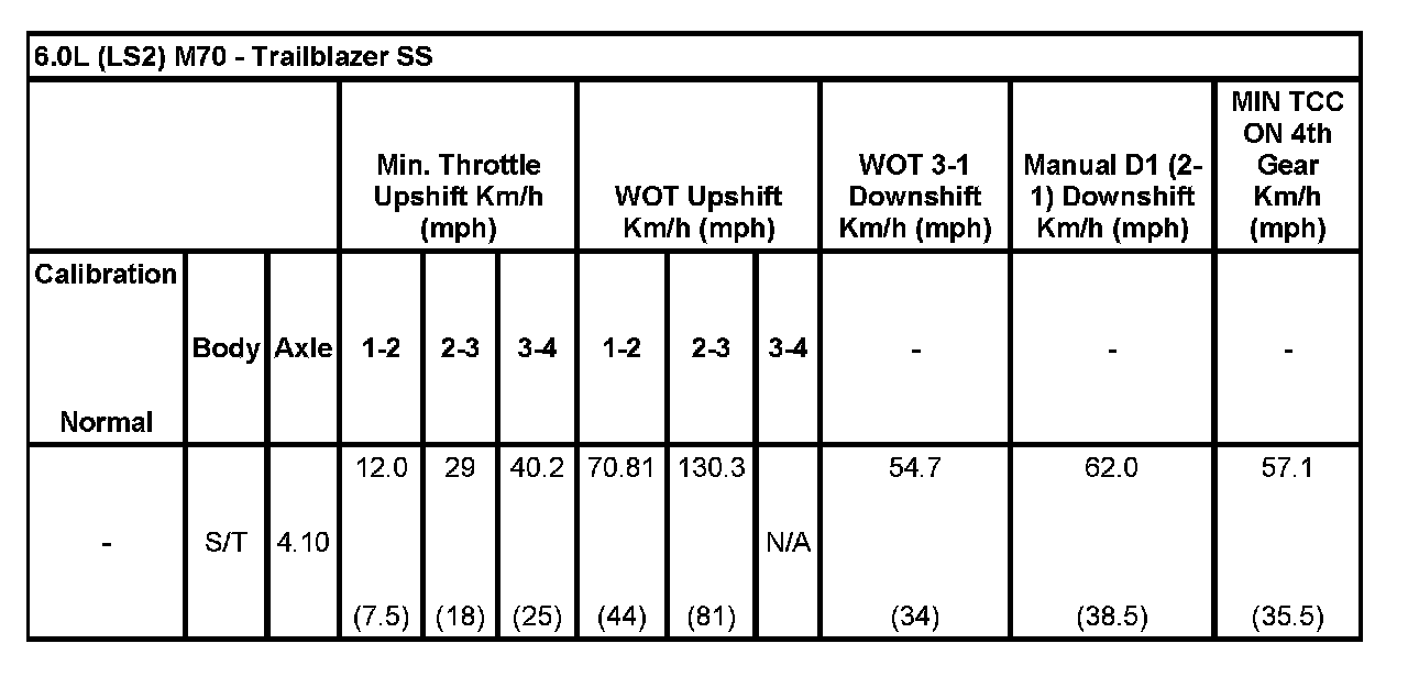 6.0L (LS2) M70 - Trailblazer SS: