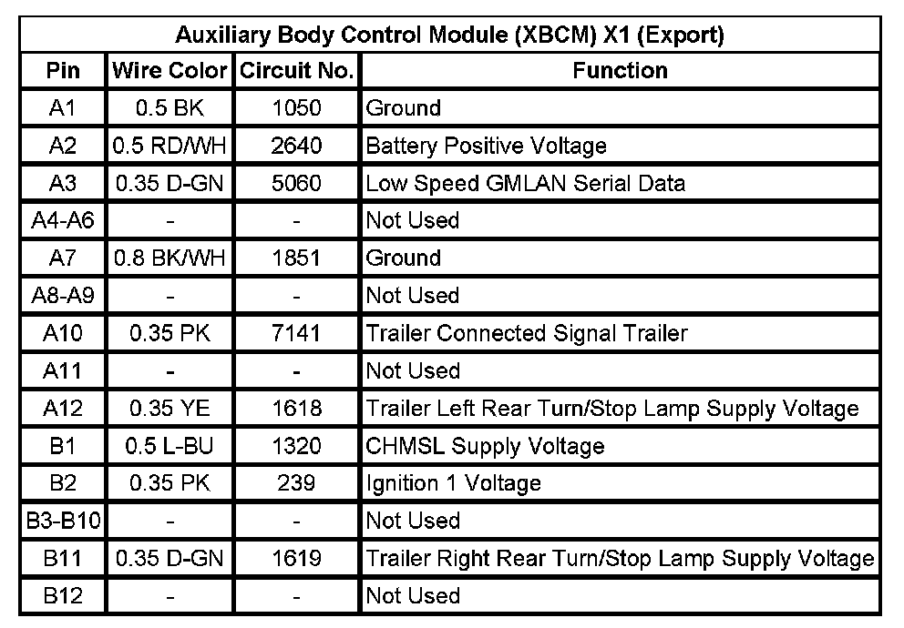 Auxiliary Body Control Module (XBCM) X1 (Export)