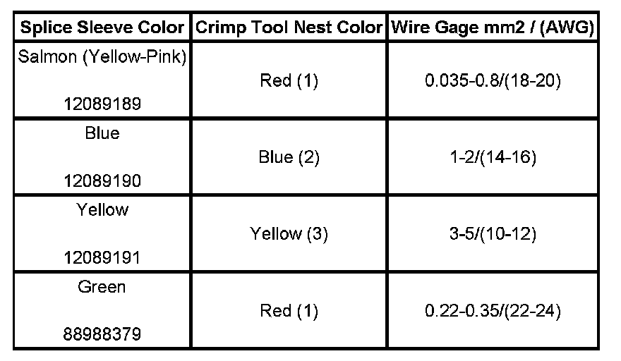 4. Select the proper DuraSeal splice sleeve according to the wire size. Refer to the above table at the beginning of the repair procedure for the color coding of the DuraSeal splice sleeves and the crimp tool nests.