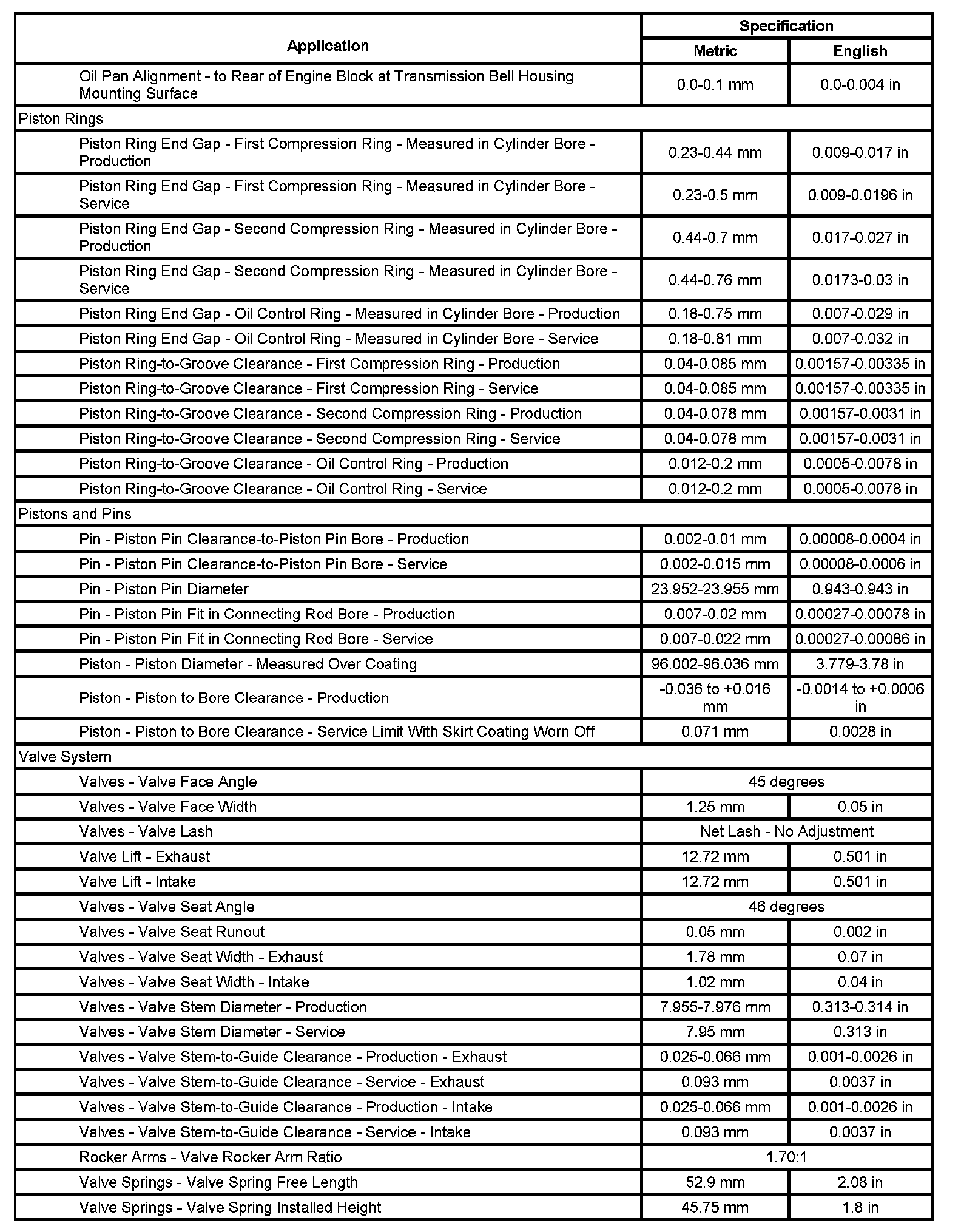 Engine Mechanical Specifications (RPO L92 VIN 8) (Part 3):