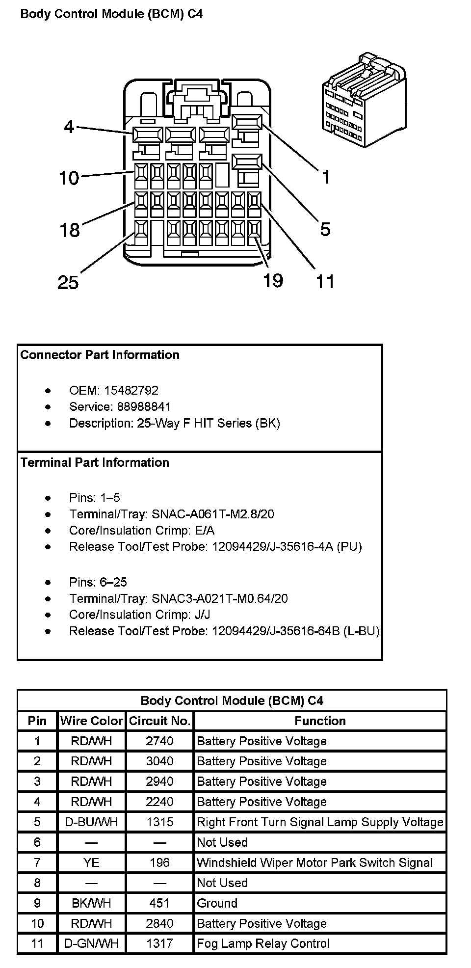 Body Control Module (BCM) C4 (Pin 1 To 11):