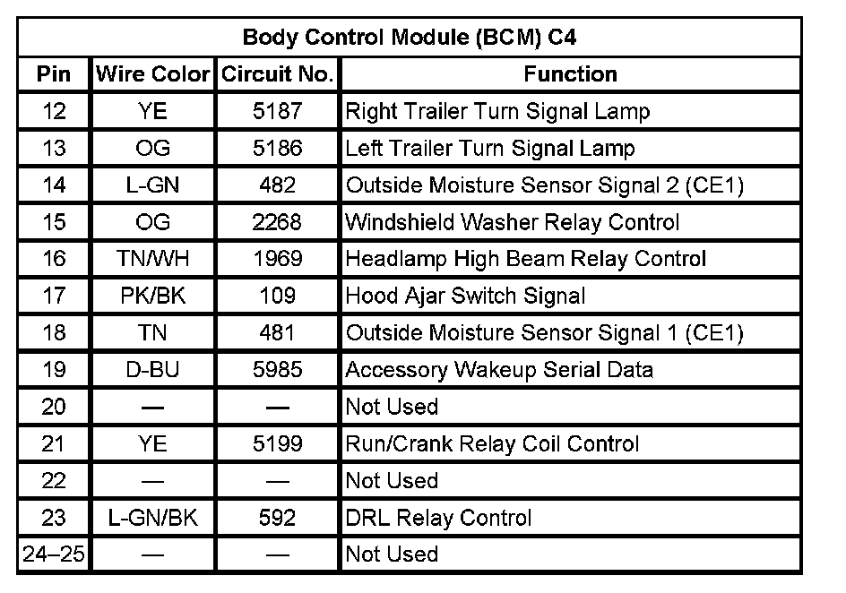 Body Control Module (BCM) C4 (Pin 12 To 25):