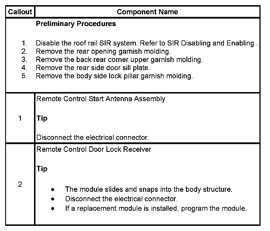 REMOTE CONTROL DOOR LOCK RECEIVER REPLACEMENT (EXCEPT AVALANCHE/ESCALADE EXT)
