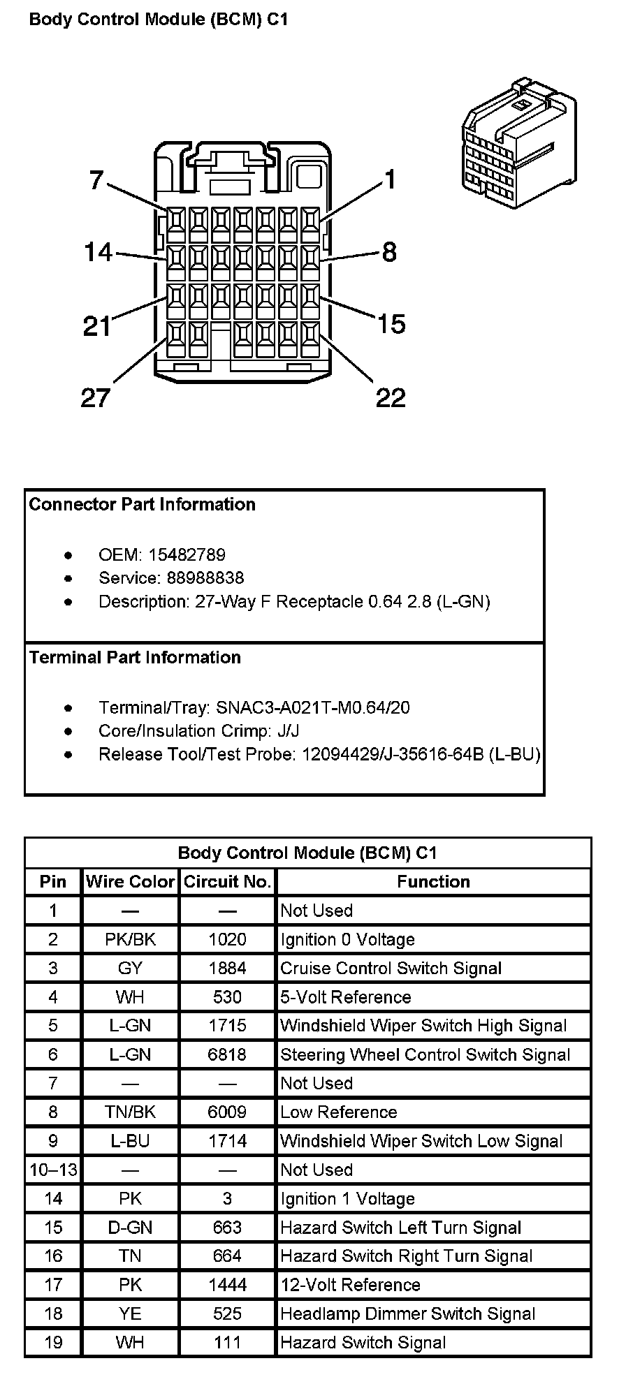 Body Control Module (BCM) C1 (Pin 20 To 27):