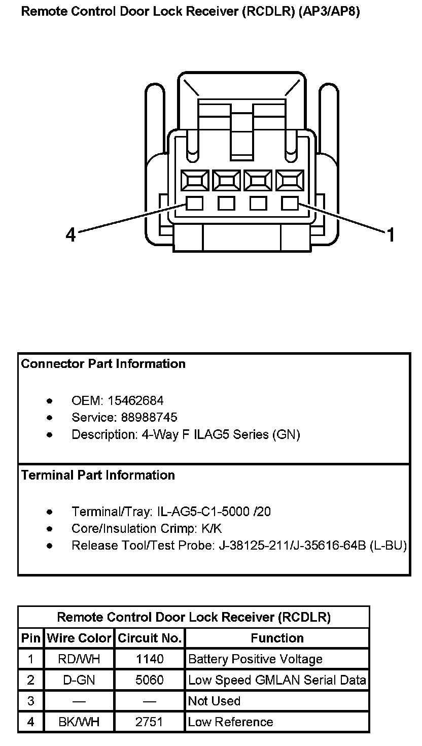 Remote Control Door Lock Receiver (RCDLR) (With RPO Codes AP3/AP8):