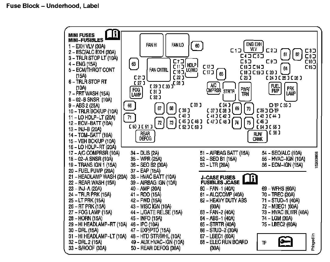 Fuse Block - Underhood, Label: