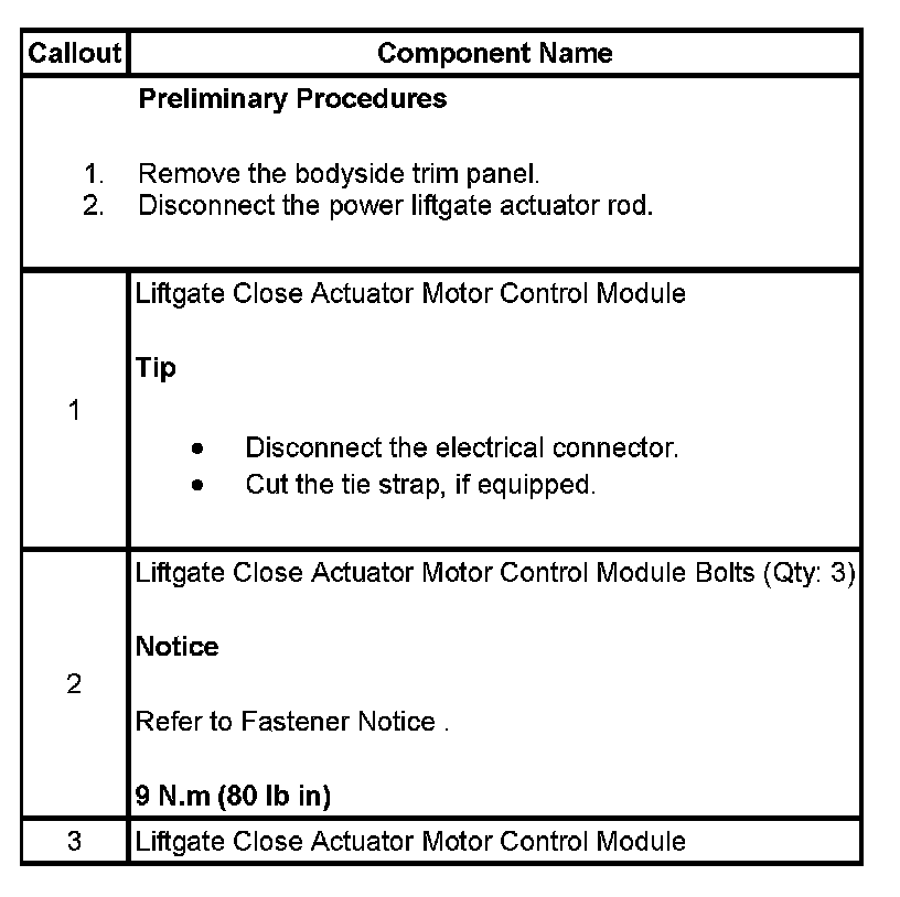 LIFTGATE CLOSE ACTUATOR MOTOR CONTROL MODULE REPLACEMENT