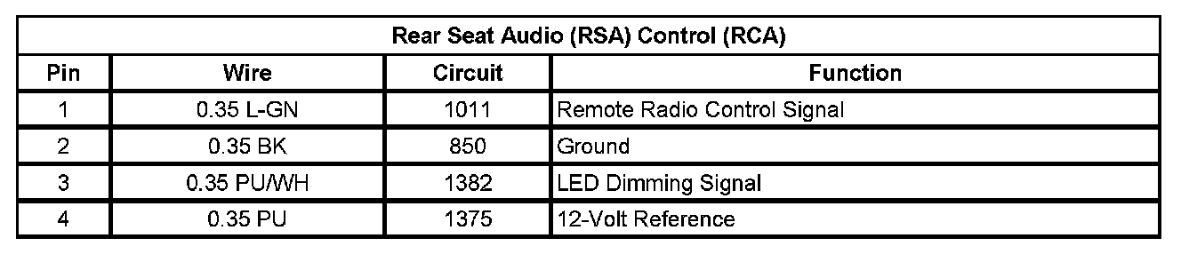 Rear Seat Audio (RSA) Control (RCA)