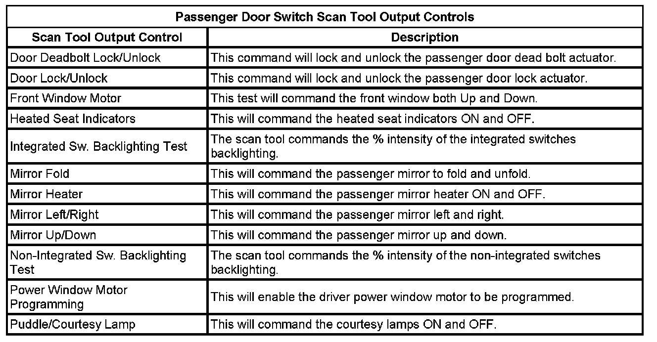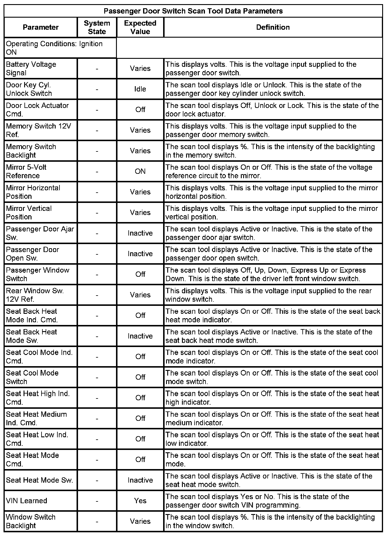 Door Lock Control Module Scan Tool Information (Passenger Door Switch)