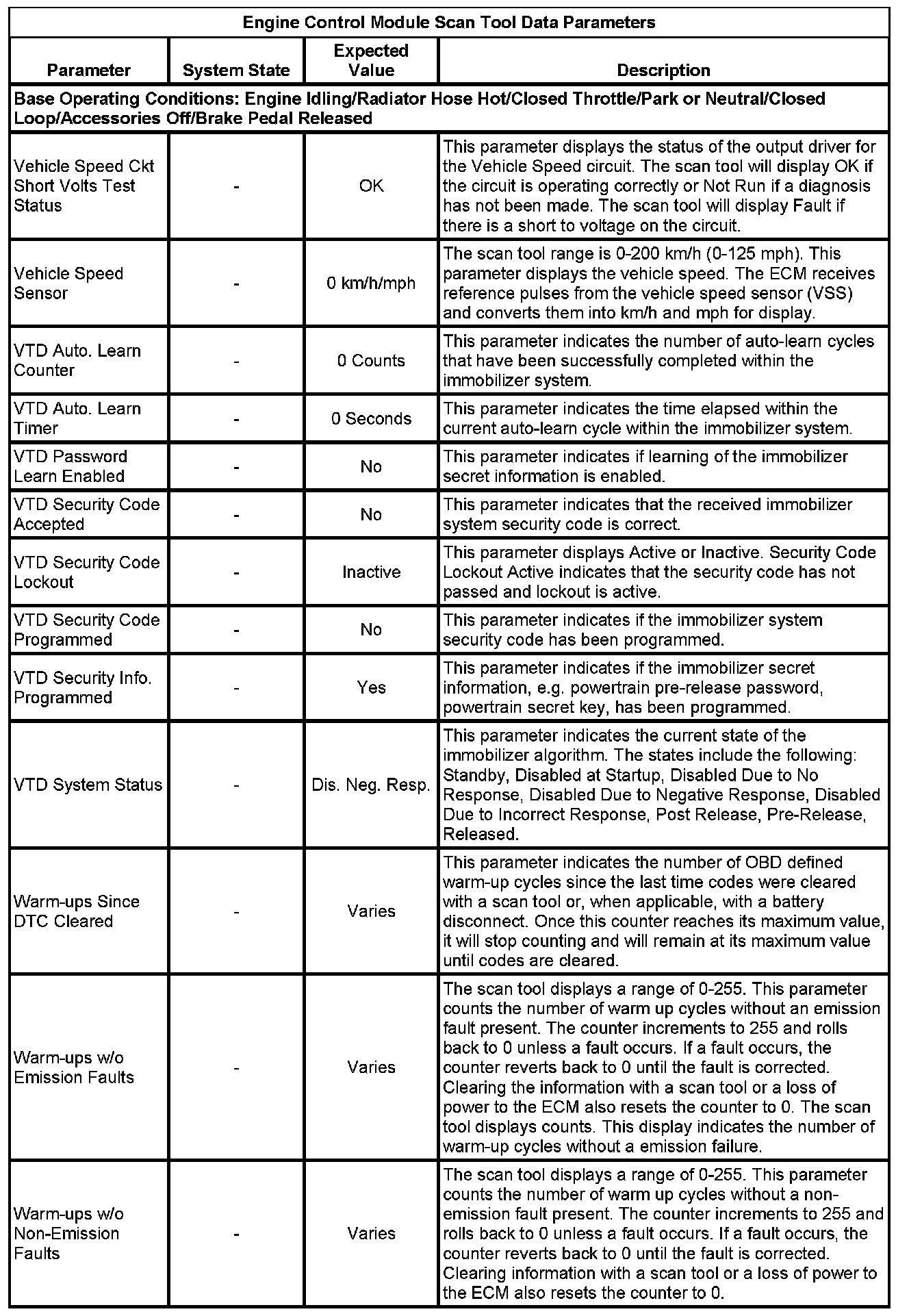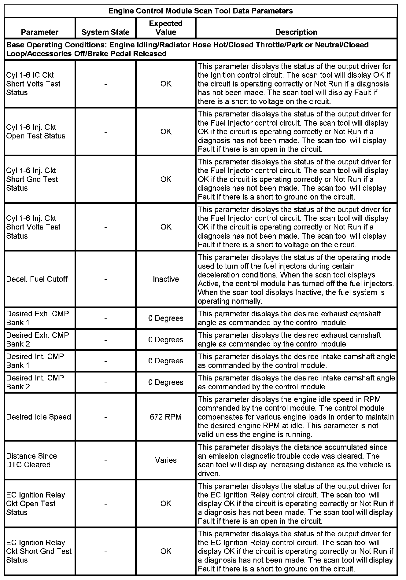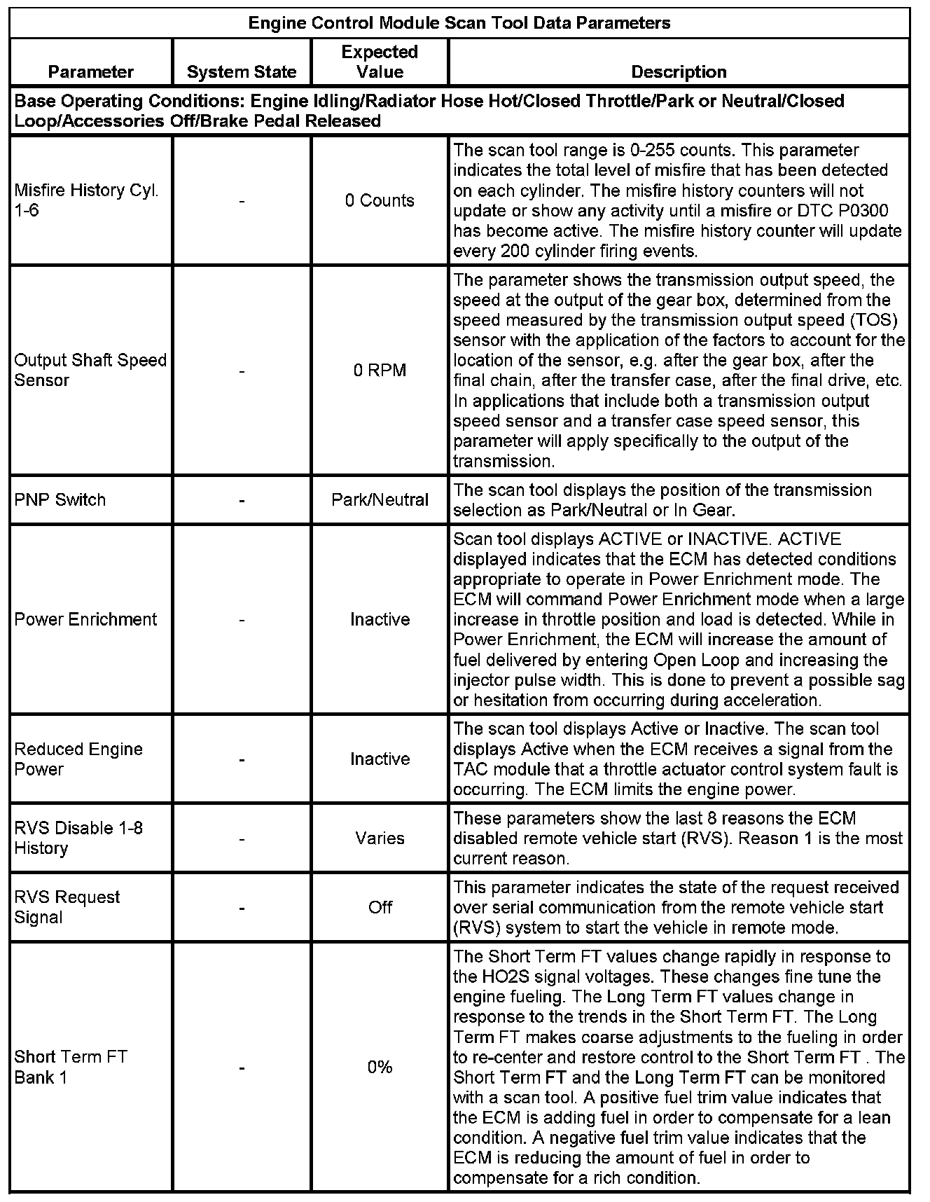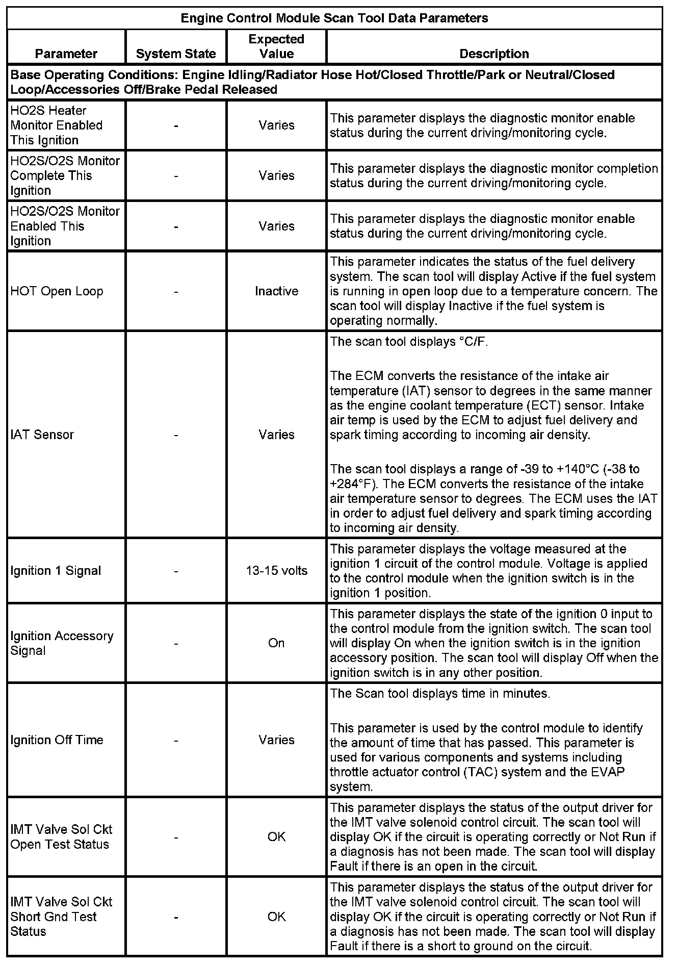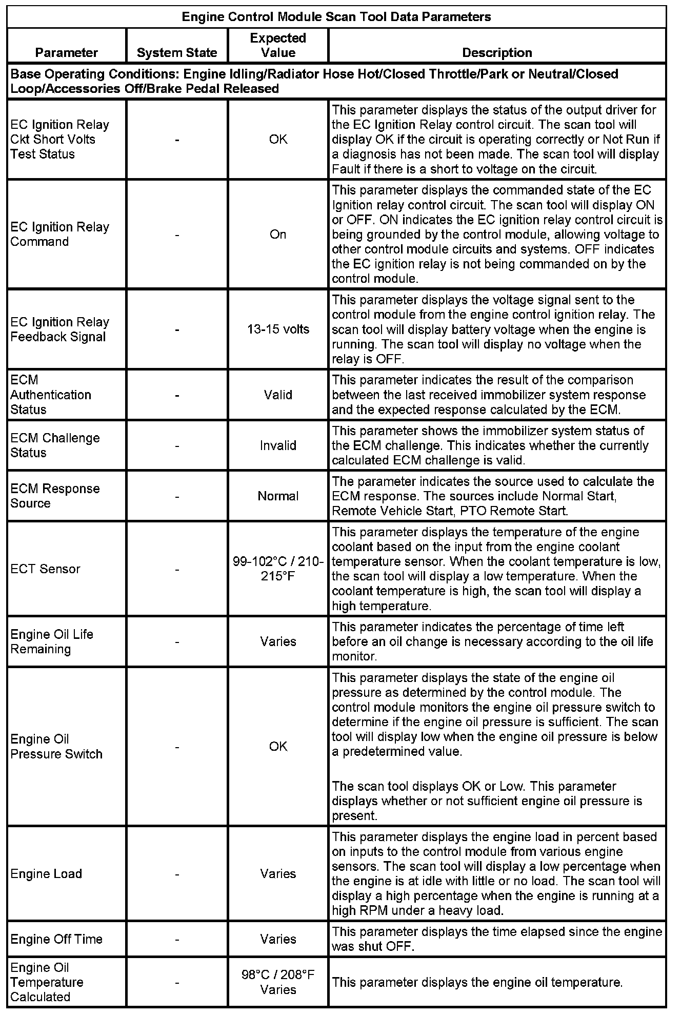 The Engine Control Module Scan Tool Data List contains all engine-related parameters that are available on the scan tool. The list is arranged in alphabetical order. A given parameter may appear in any one of the data lists, and in some cases may appear more than once, or in more than one data list in order to group certain related parameters together.