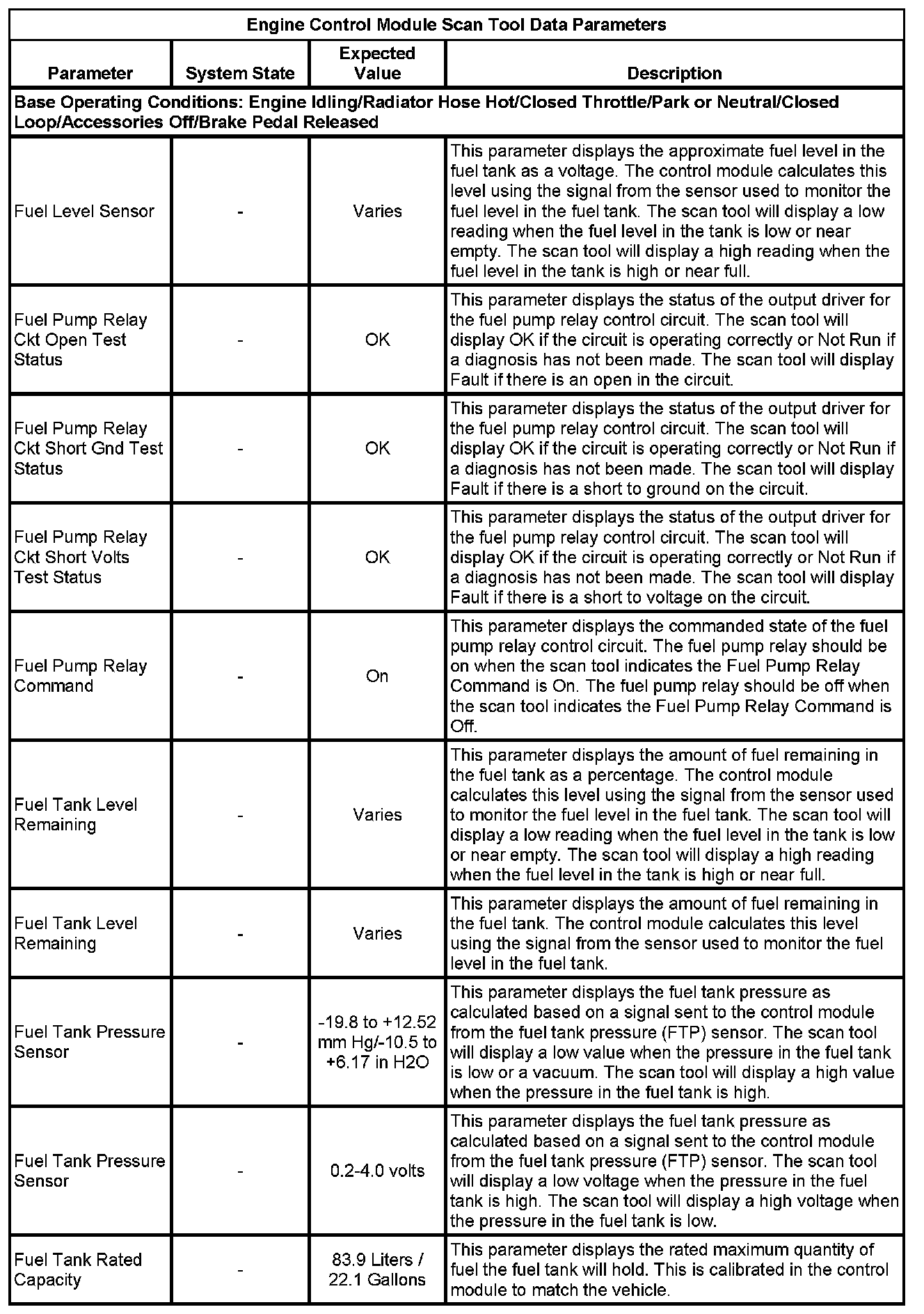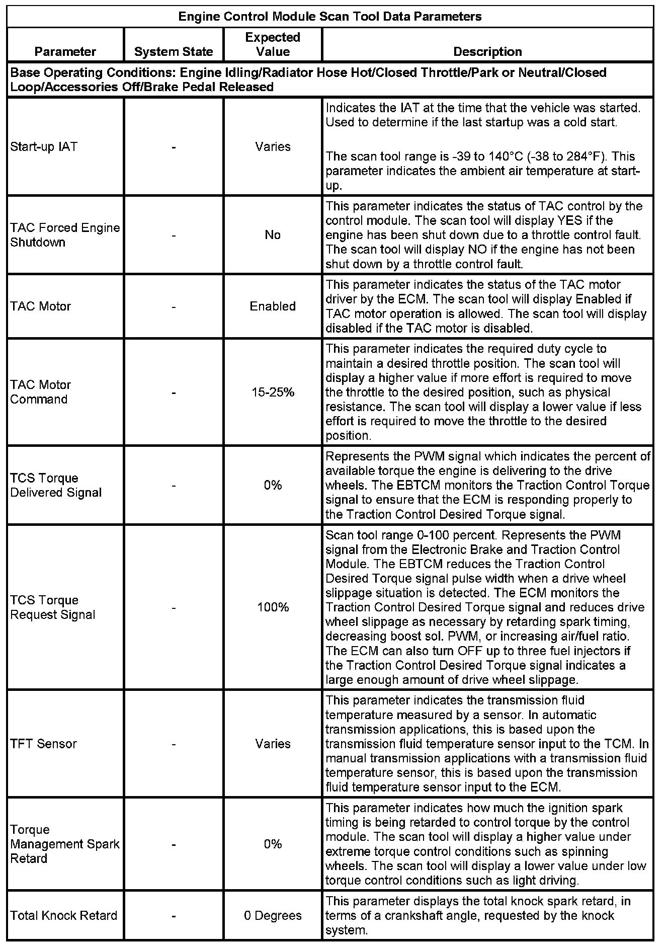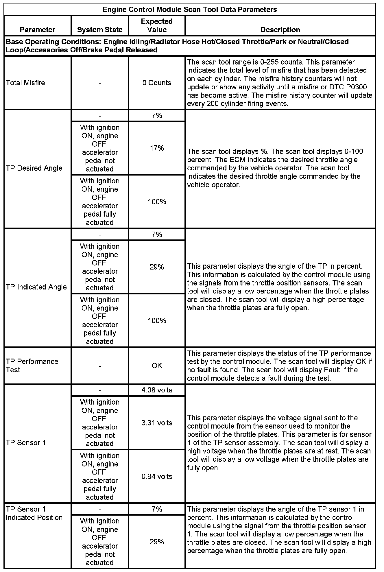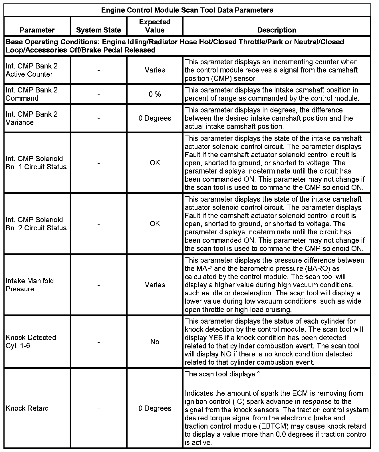 Only the parameters listed below are referenced in this service data for use in diagnosis. If all values are within the typical range described below, refer to Symptoms - Computers and Control Systems for diagnosis. - Symptoms - Engine Controls