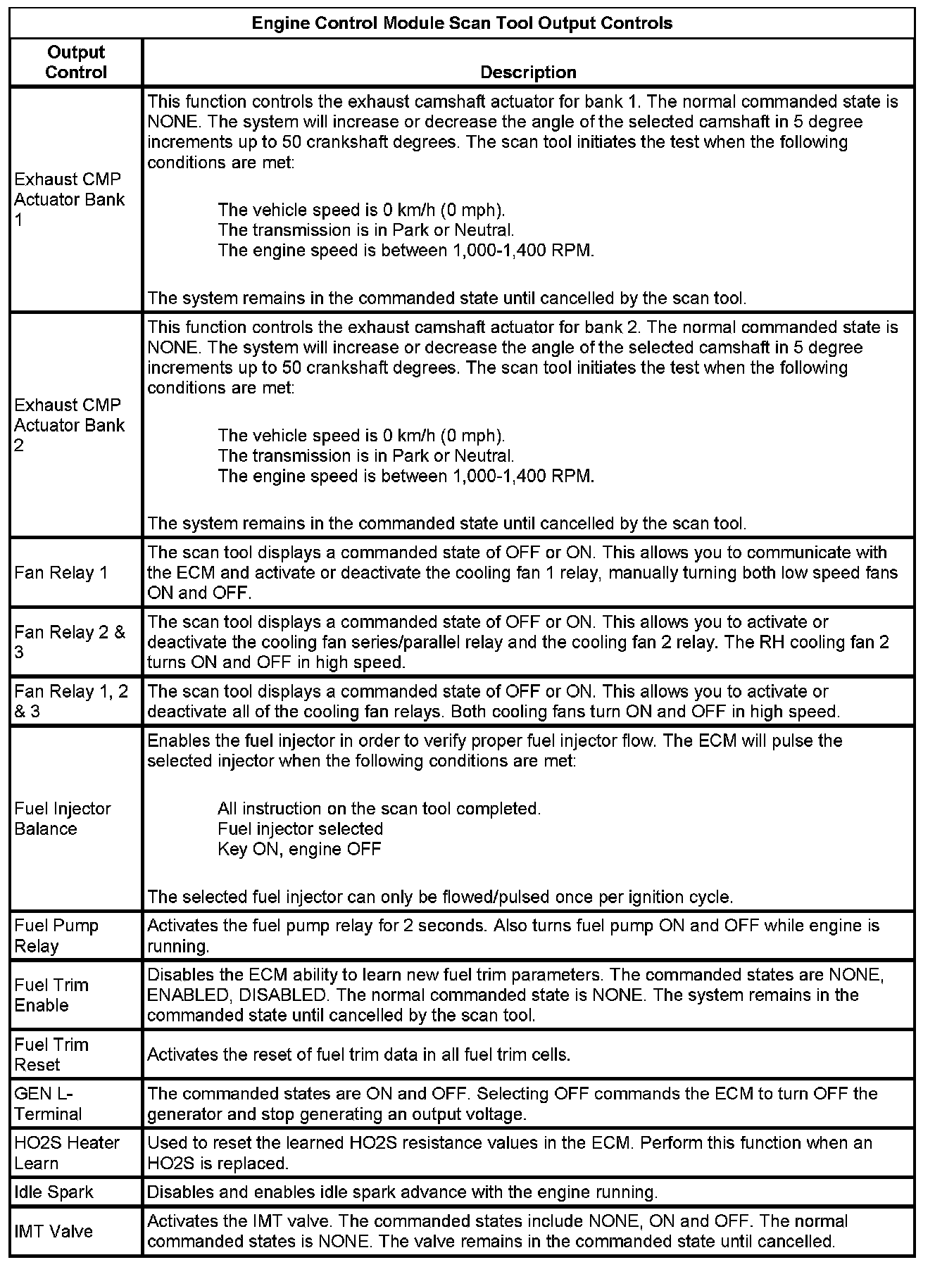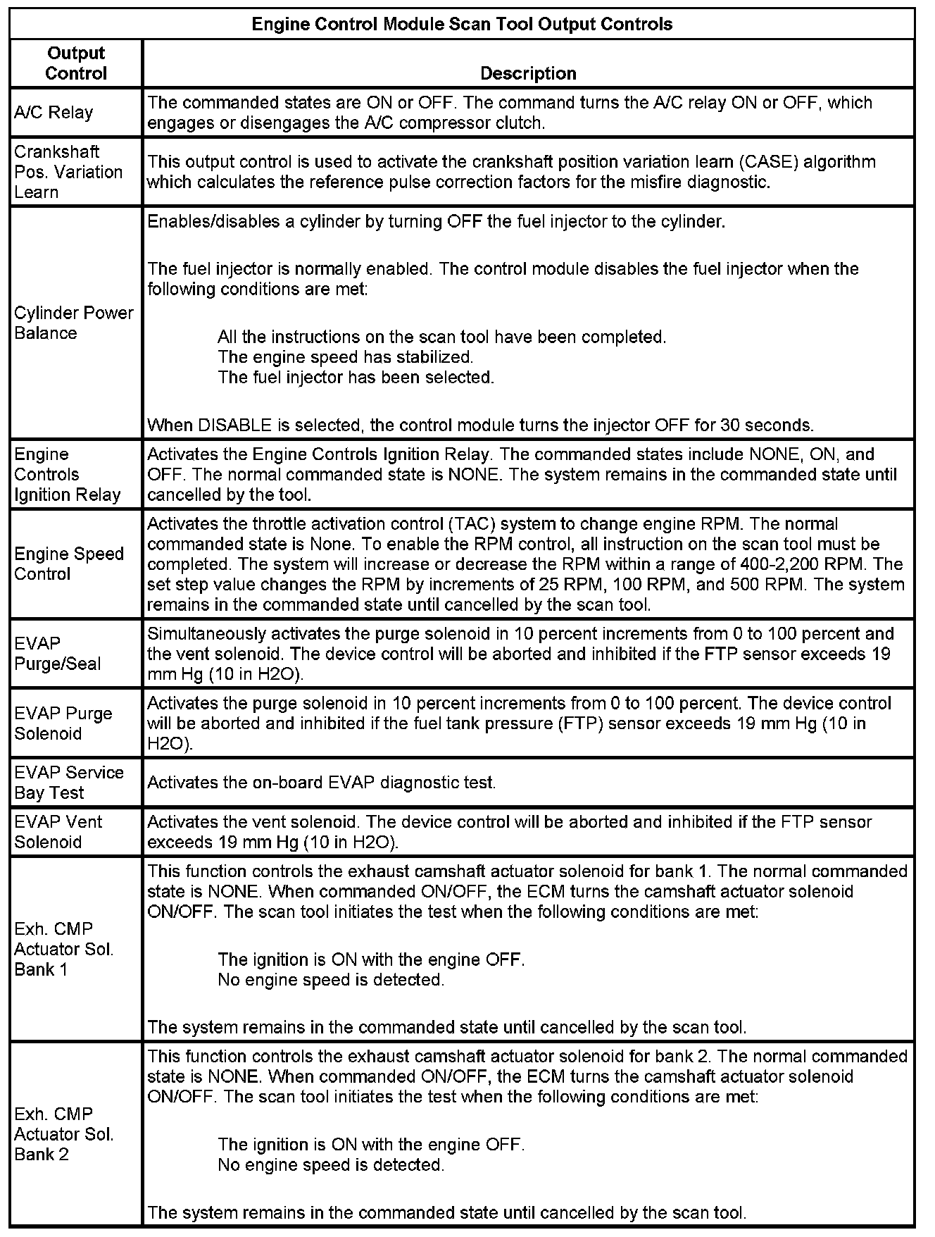 Engine Control Module Scan Tool Information
