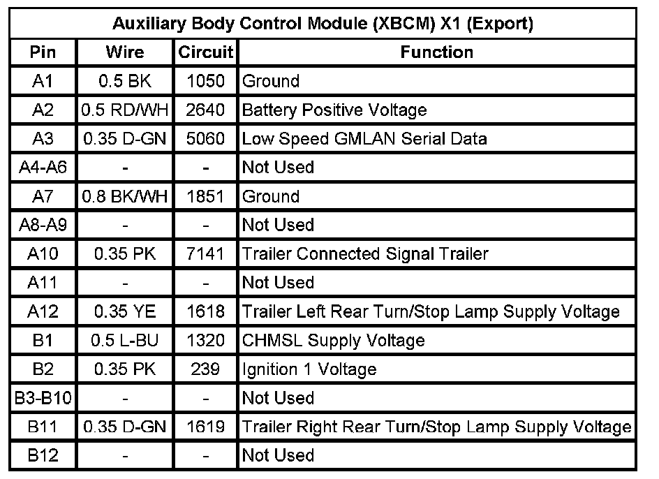 Auxiliary Body Control Module (XBCM) X1 (Export)