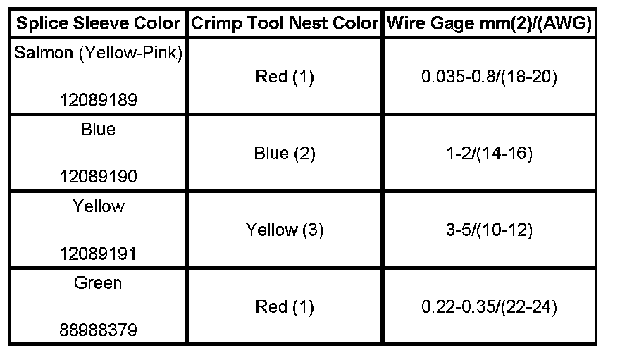 6. Select the proper DuraSeal splice sleeve according to the wire size. Refer to the above table at the beginning of the repair procedure for the color coding of the DuraSeal splice sleeves and the crimp tool nests.