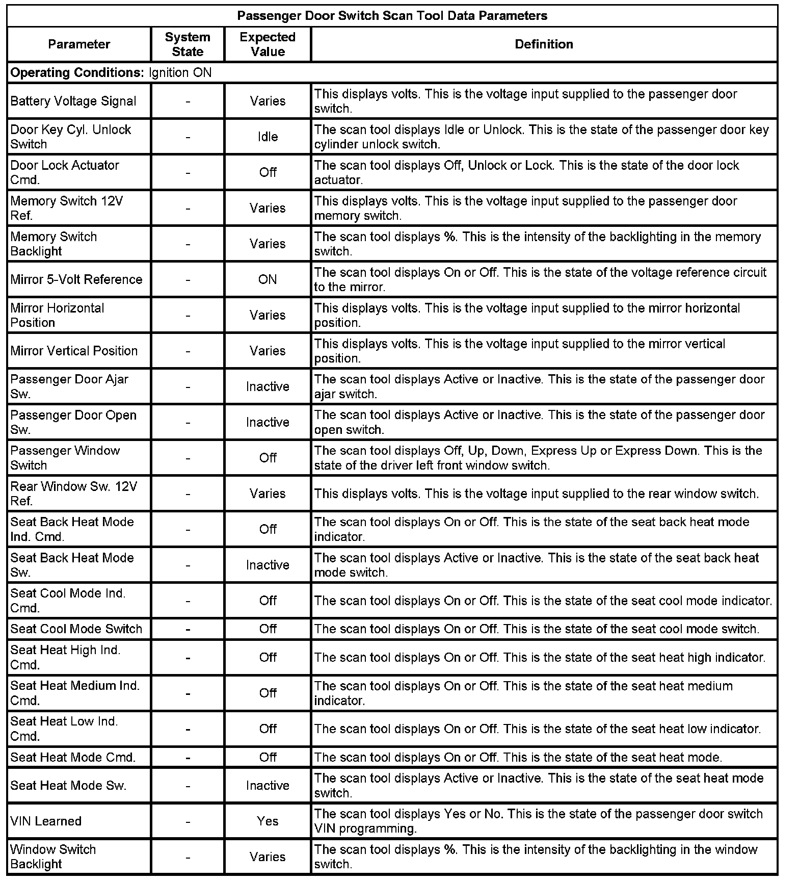 Door Lock Control Module Scan Tool Information (Passenger Door Switch)