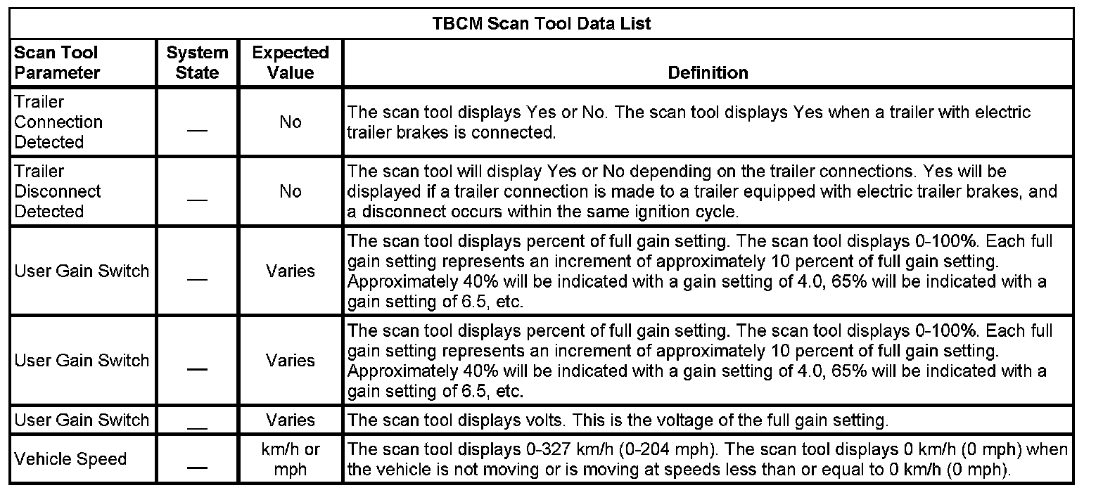 Trailer Brake Control Module Scan Tool Information