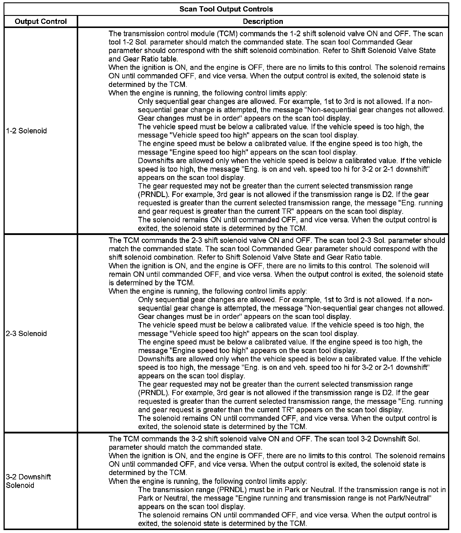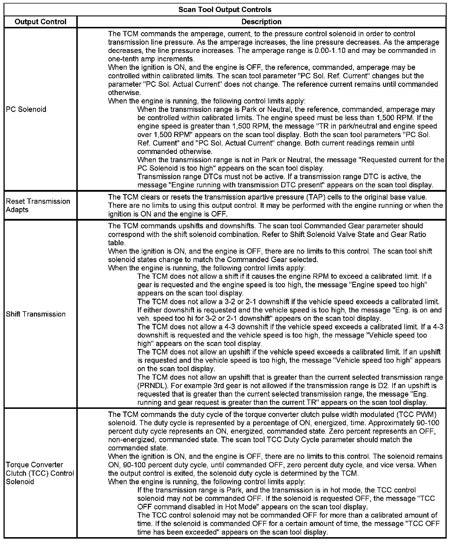 The Transmission Control Module Scan Tool Data List contains all transmission related parameters that are available on the scan tool. The list is arranged in alphabetical order. A given parameter may appear in any one of the data lists, and in some cases may appear more than once, or in more than one data list in order to group certain related parameters together.